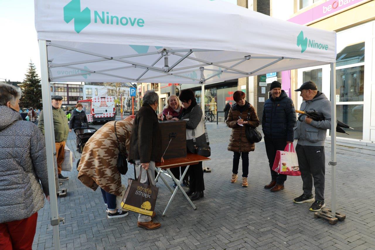 NINOVE – De prijsuitreiking van de eindejaaractie tijdens de wekelijkse dinsdagmarkt vond dinsdag 26 december plaats op de Graanmarkt.