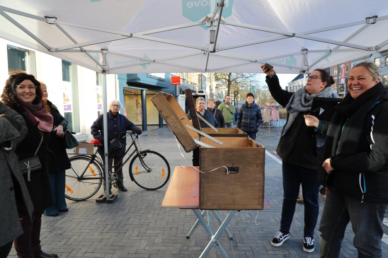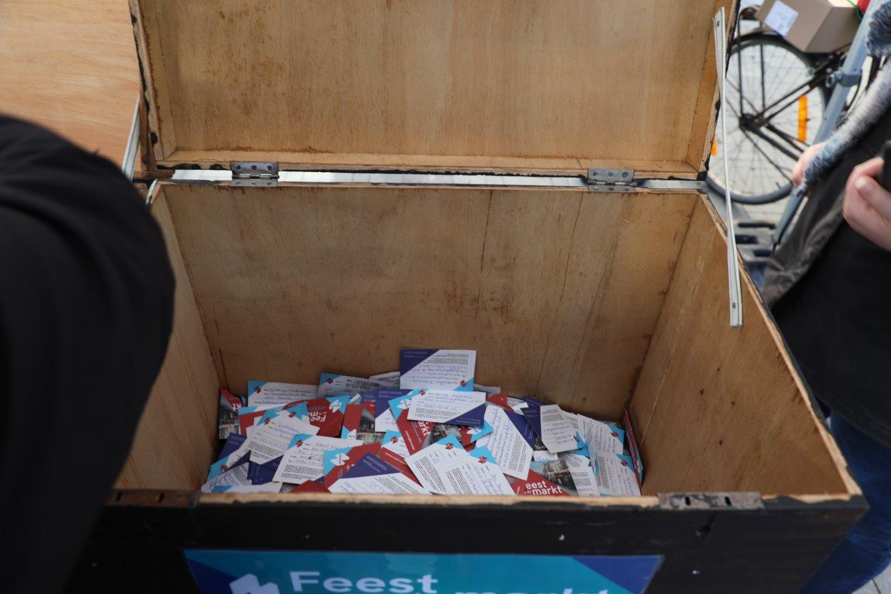 Er waren 50 winnaars, die telkens een bonnenpakket ontvingen van € 50. Iedere marktbon heeft een waarde van € 10, die ze de komende weken op de dinsdagmarkt kunnen gebruiken.