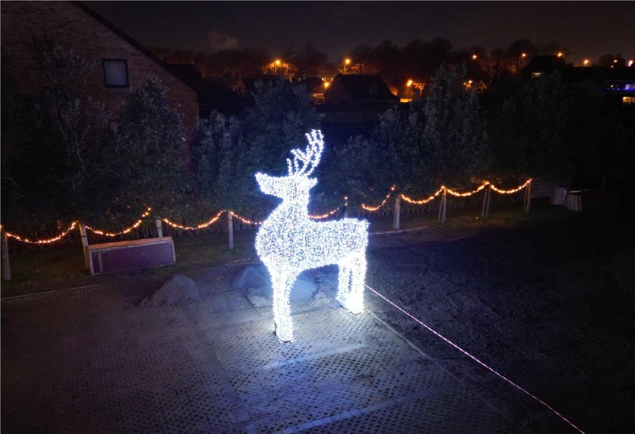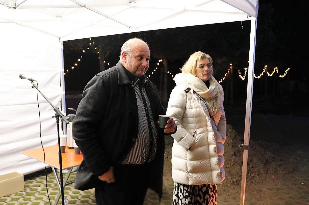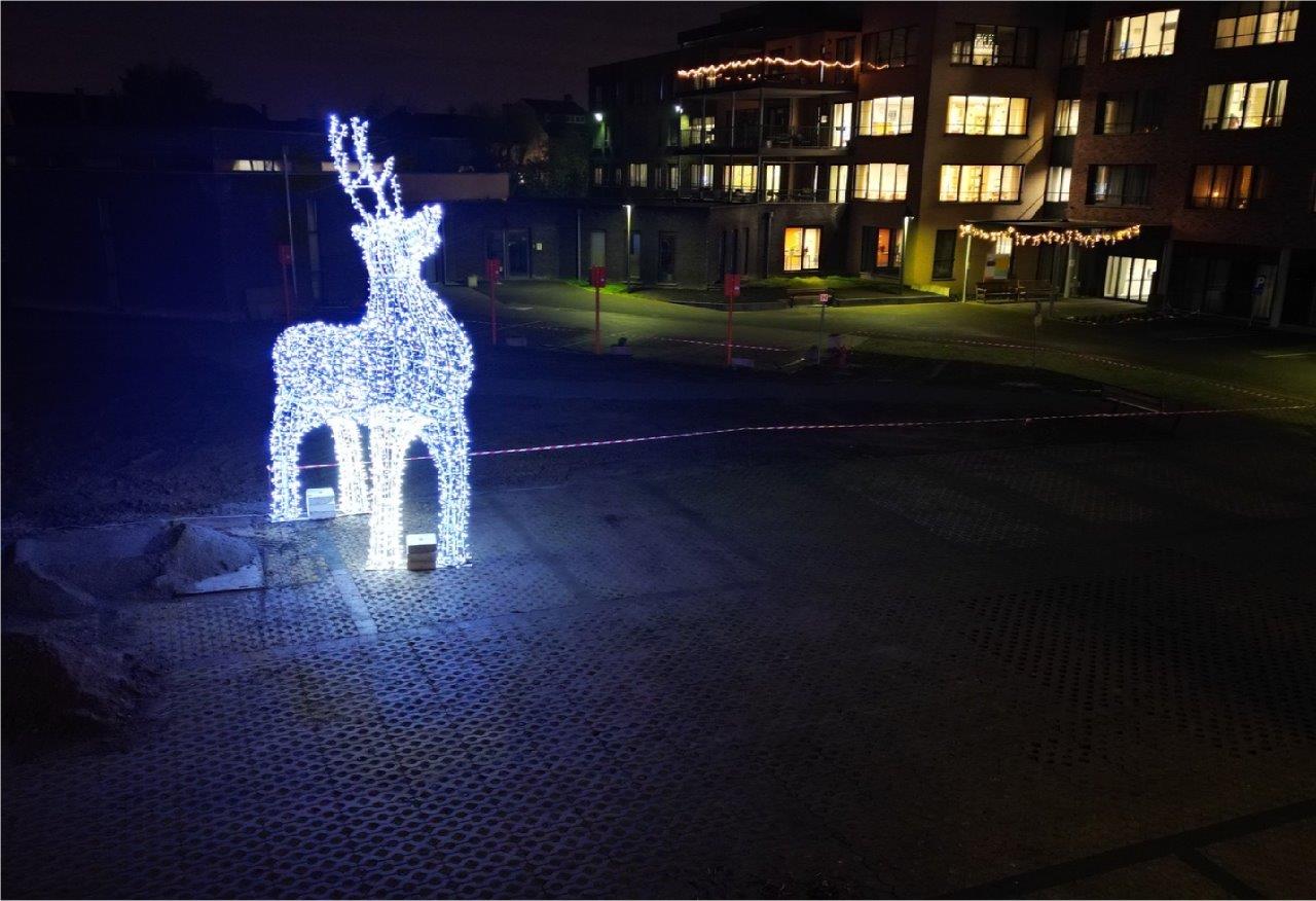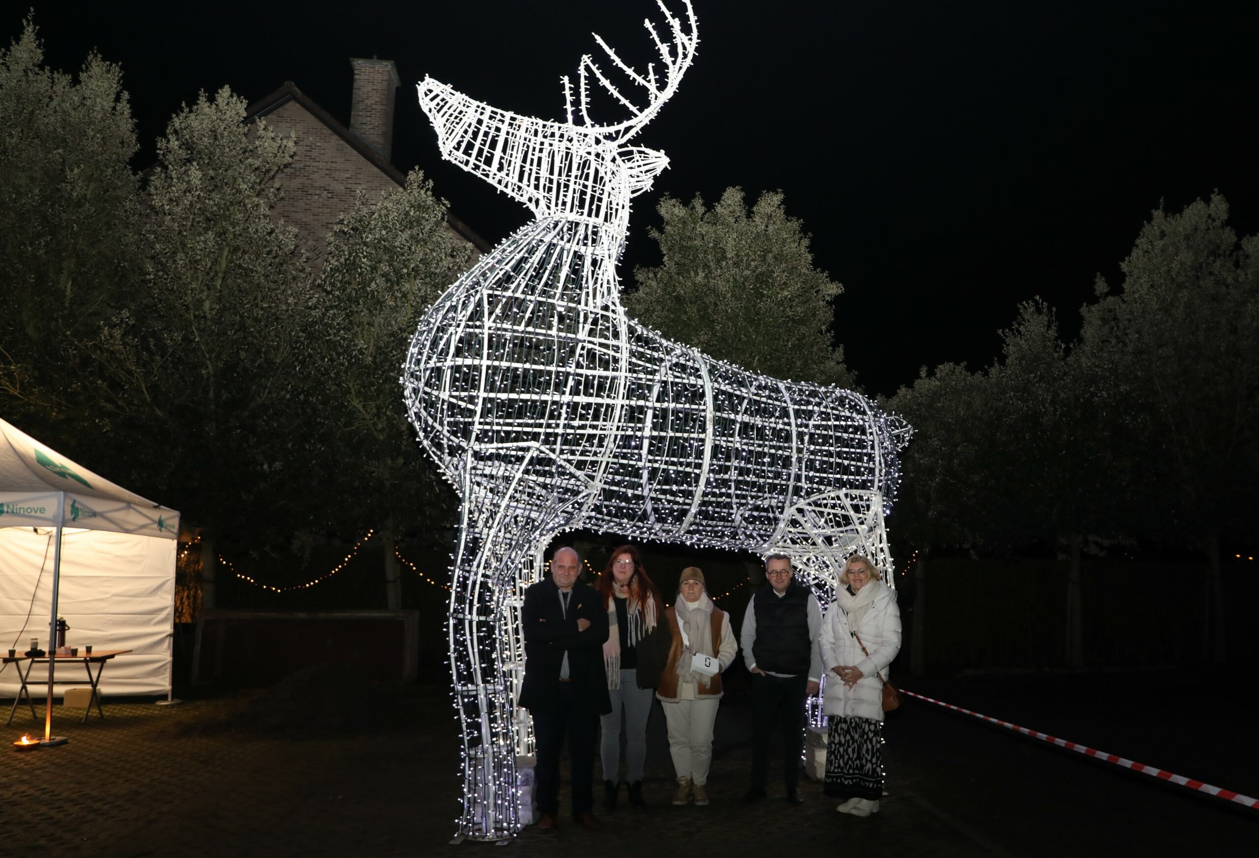 De schepen voor lokale economie Alain Triest (Open Vld) kweet zich van die taak, samen met burgemeester Tania De Jonge (Open Vld) en schepen Henri Evenepoel (Open Vld). Op het parkeerterrein stond een verlicht metersgroot hert opgesteld, wat voor sfeer moet zorgen bij de bewoners van het wzc Klateringen en de voorbijgangers.
