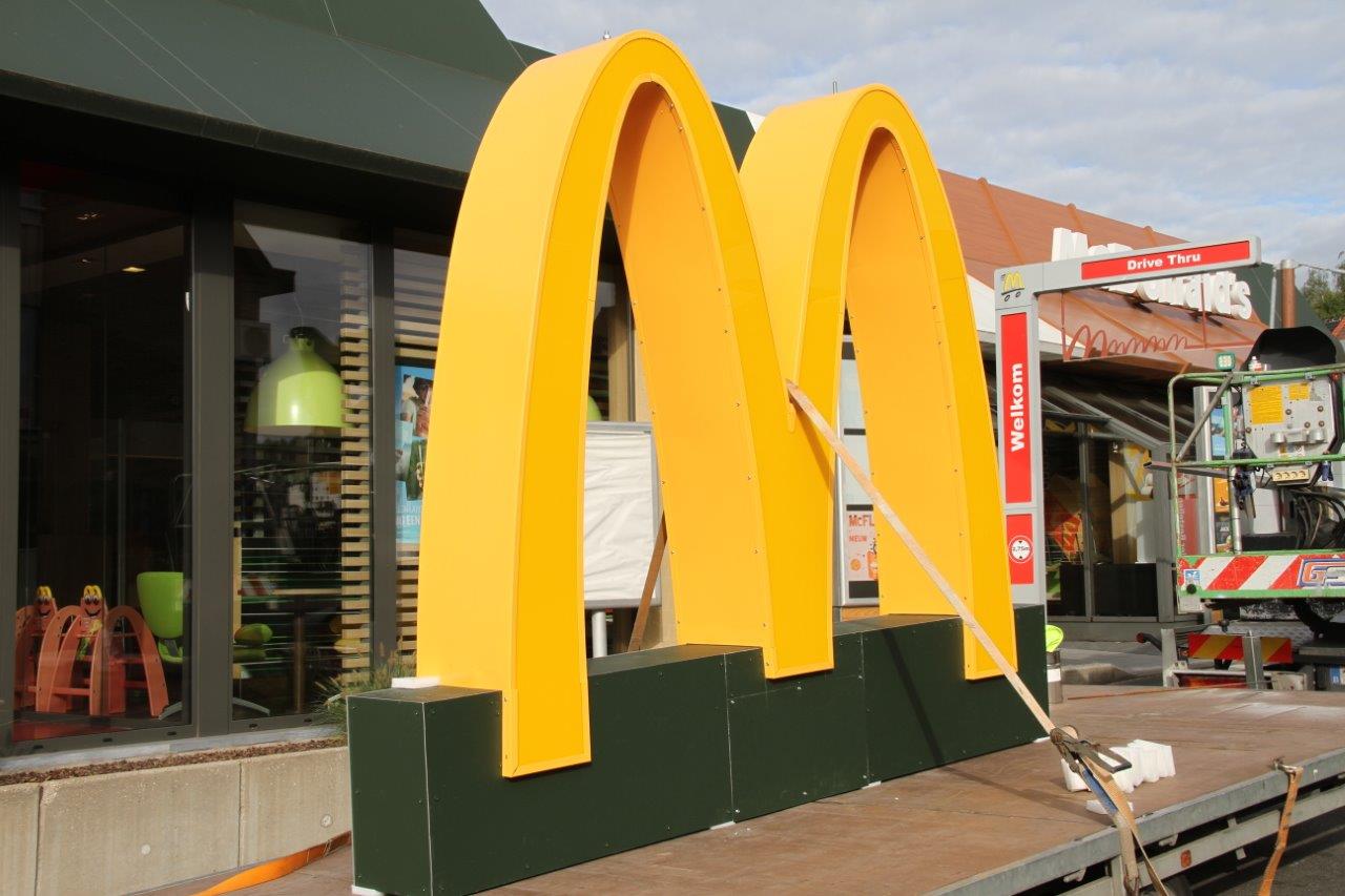 Het nieuwe bord is qua ontwerp volledig nieuw. “Enkel de ‘golden arrows’, de gouden bogen, zijn nog te zien. Geen onderschrift met de naam of andere verwijzingen meer. Inmiddels is dat symbool goed ingeburgerd. Iedereen herkent in die gouden bogen onmiddellijk McDonald’s.”
