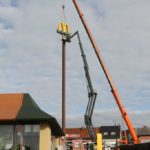 De pyloon krijgt nog een nieuwe antiroestbehandeling en een grijze afdeklaag.