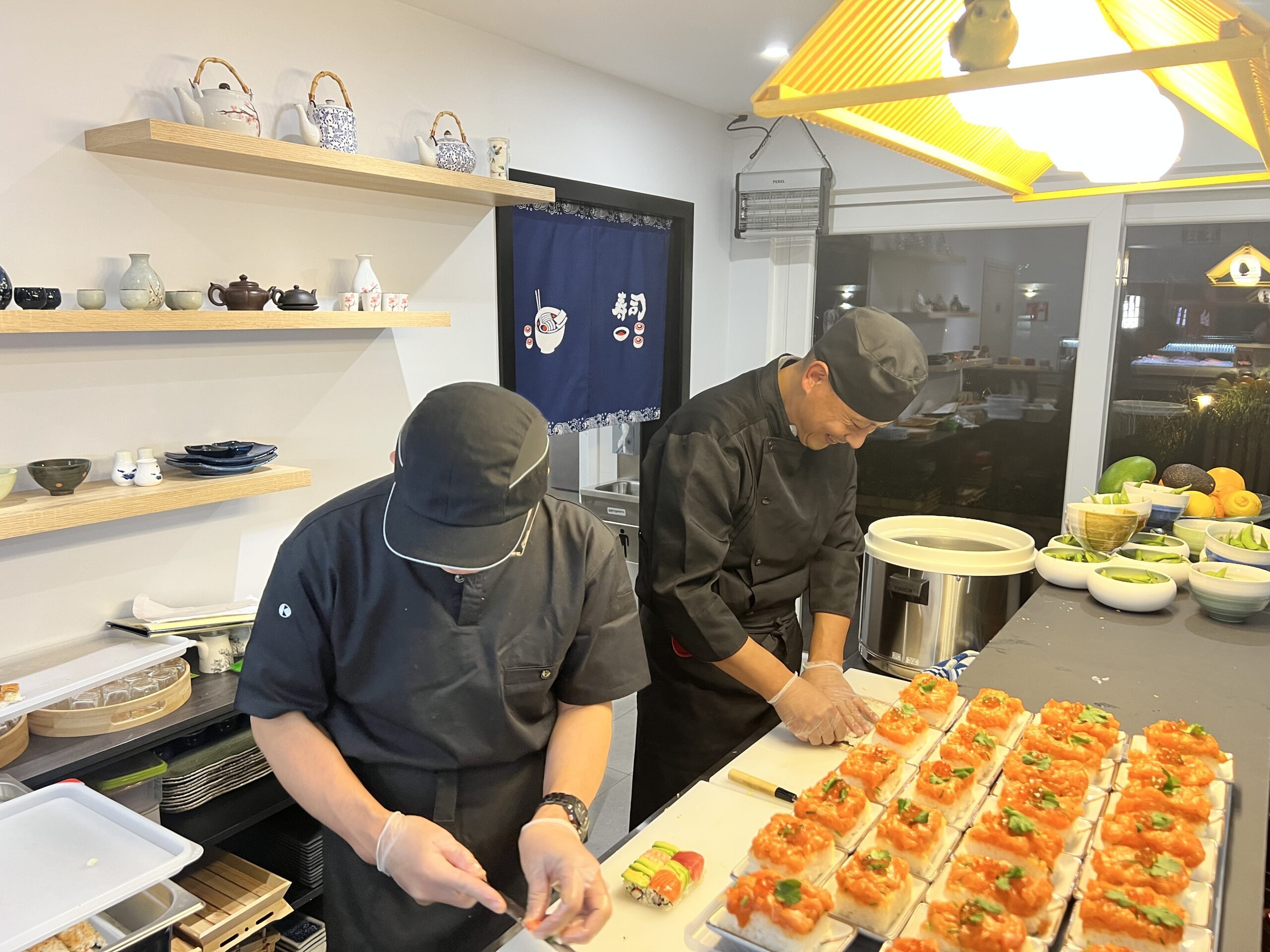 “We serveren uiteraard verse sushi, maar ook gefrituurde Japanse hapjes zoals gepaneerde kip, zalmstukjes, scampi, kippensaté en andere lekkere gerechten. Reservatie is niet nodig en je kunt ook gerechten afhalen. Later zullen we die mogelijkheid online aanbieden. We starten met een vaste menukaart, maar afhankelijk van de vragen en de voorkeuren van de klanten zullen we die aanpassen. Het is in het begin een kwestie van zoeken.”