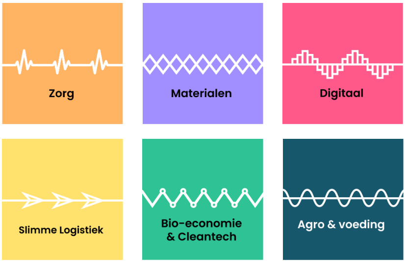 Het gaat om 6 sectoren waarin de provincie vandaag al sterk staat of veel potentieel ziet en die het speerpunt vormen van haar economisch beleid. Deze speerpuntclusters zijn: bio-economie/cleantech, materialen, zorgeconomie,  slimme digitalisatie, agro-voeding en slimme logistiek.