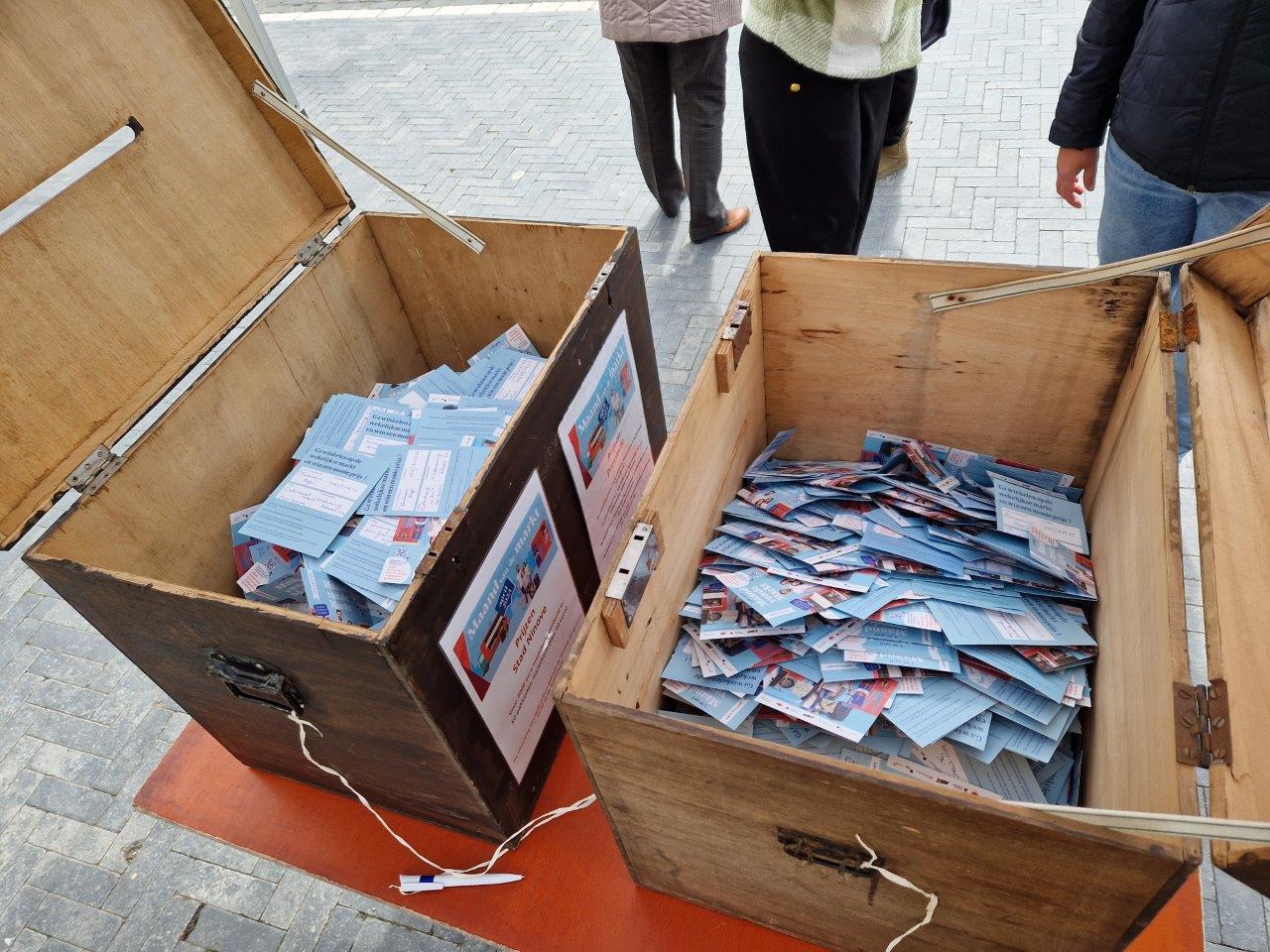 De marktleiders en de marktcommissie brachten dinsdagmiddag 25 april de beide wedstrijdboxen samen en trokken uit elke doos 25 winnaars. In totaal ontvangen 50 klanten elk 6 marktbonnen van € 10, die ze bij een volgende marktaankoop kunnen verzilveren.