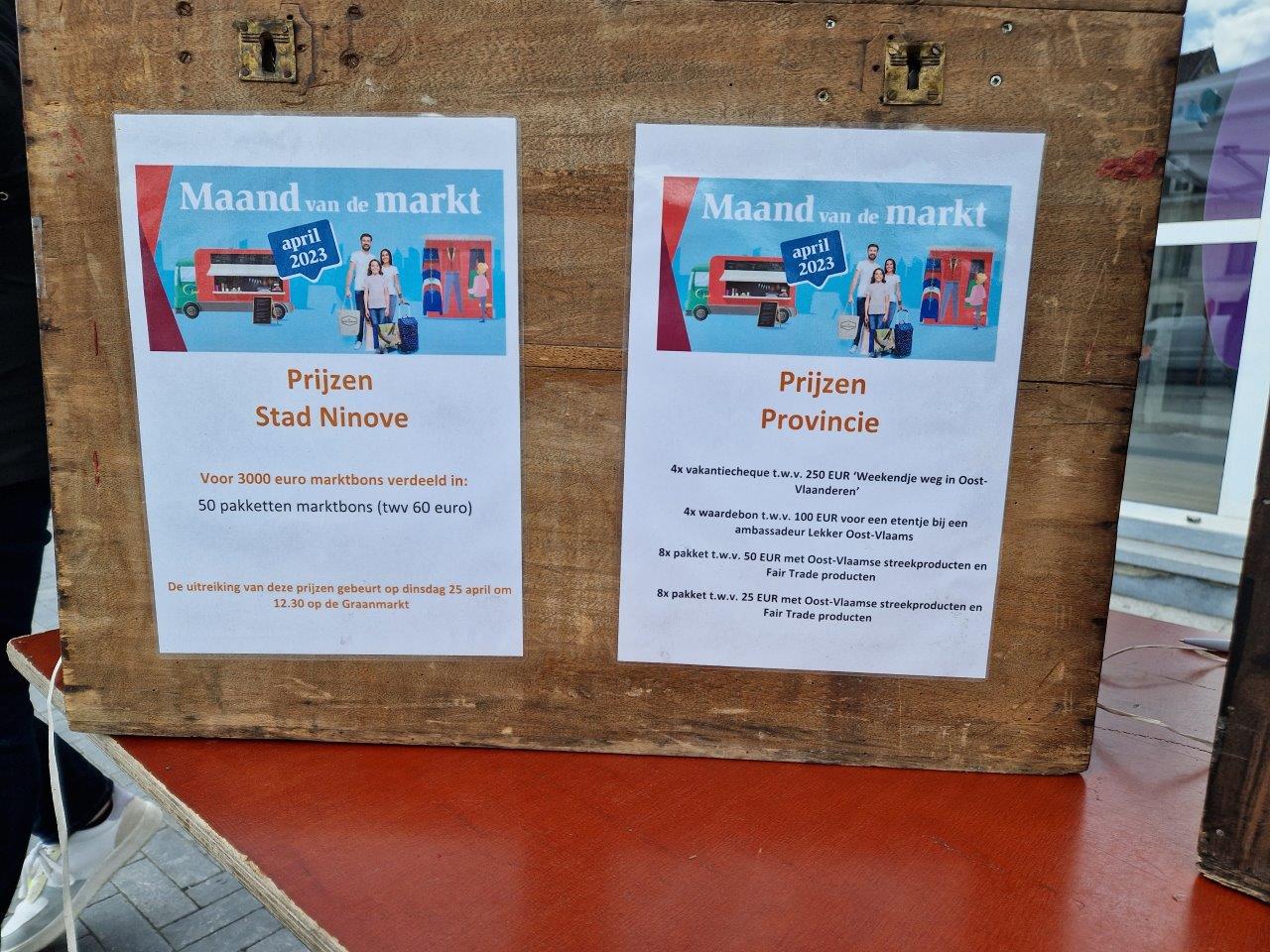 NINOVE – De dienst lokale economie reikte dinsdag 25 april 50 marktbonnen uit voor een totale waarde van € 3.000. Daarmee beloonde de stad de klanten voor hun aankopen op de wekelijkse dinsdagmarkt. De provincie Oost-Vlaanderen deed er nog een aantal prijzen bovenop.