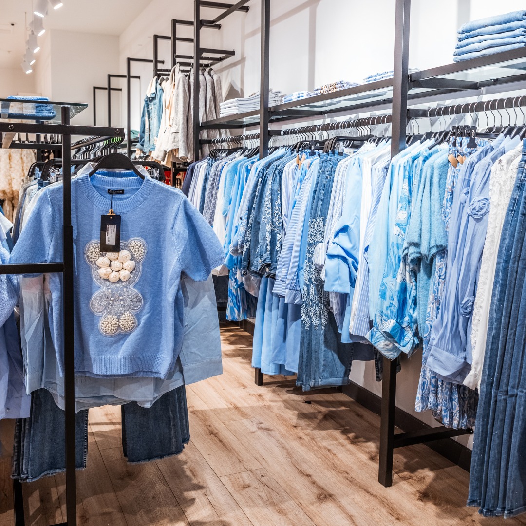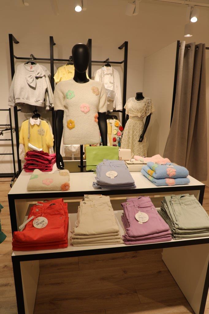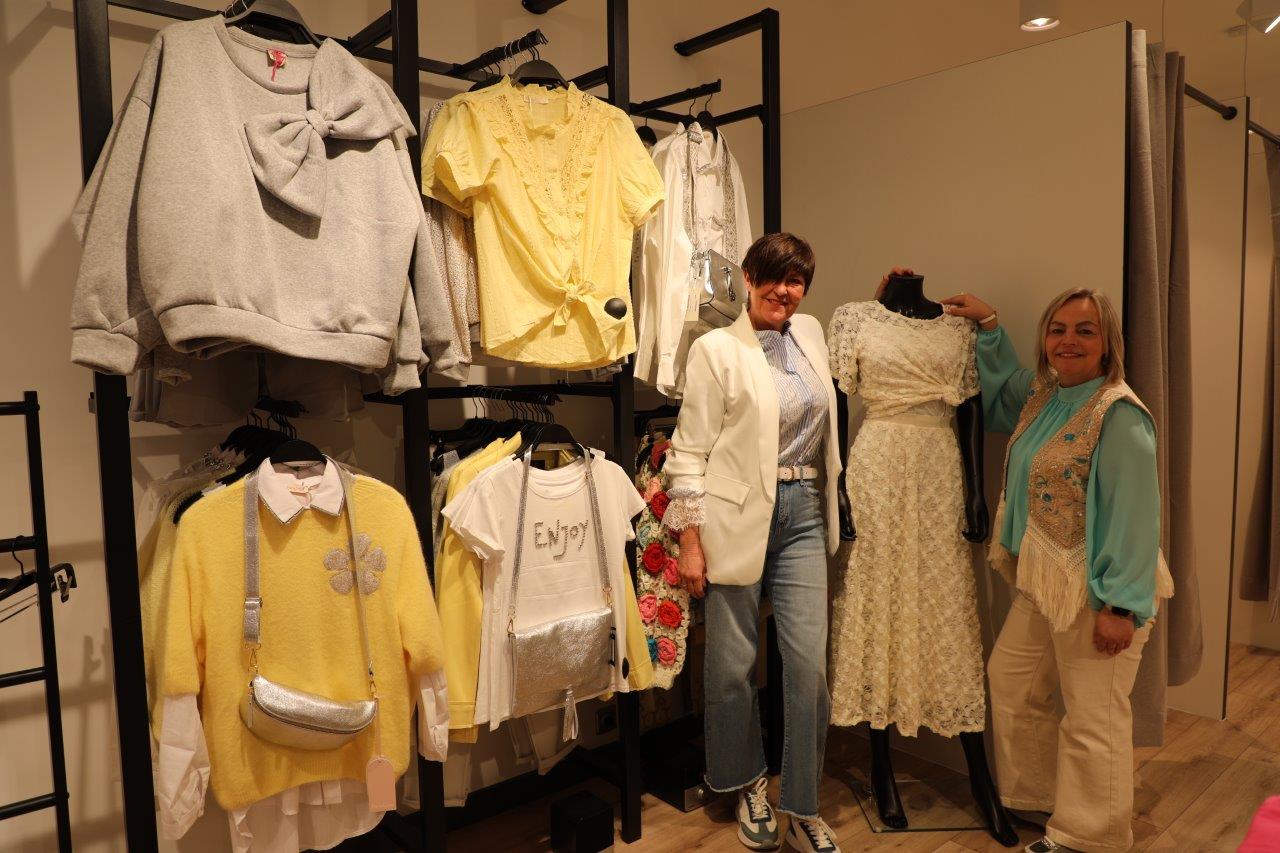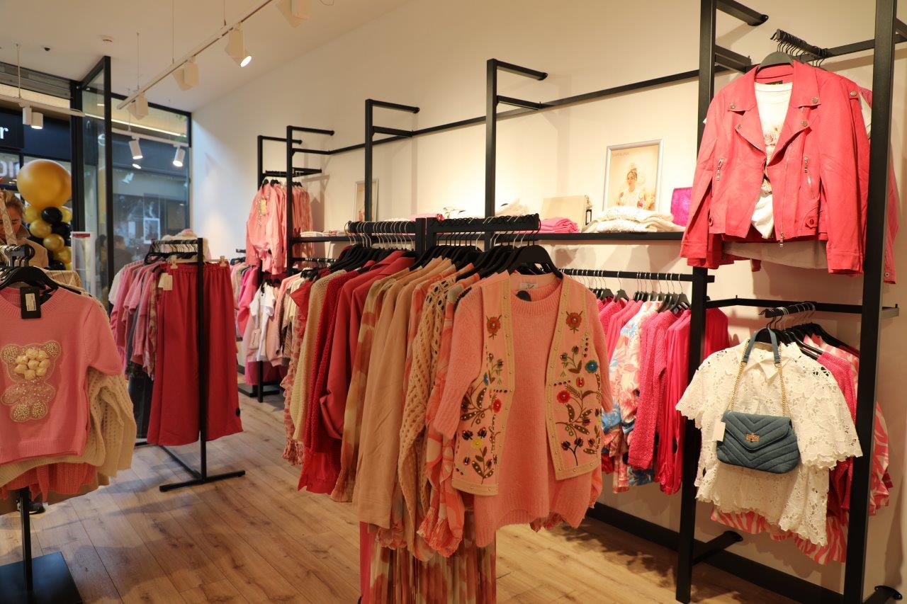 De pas geopende modewinkel biedt een mooie collectie dameskledij aan, met bijpassende accessoires zoals handtassen.