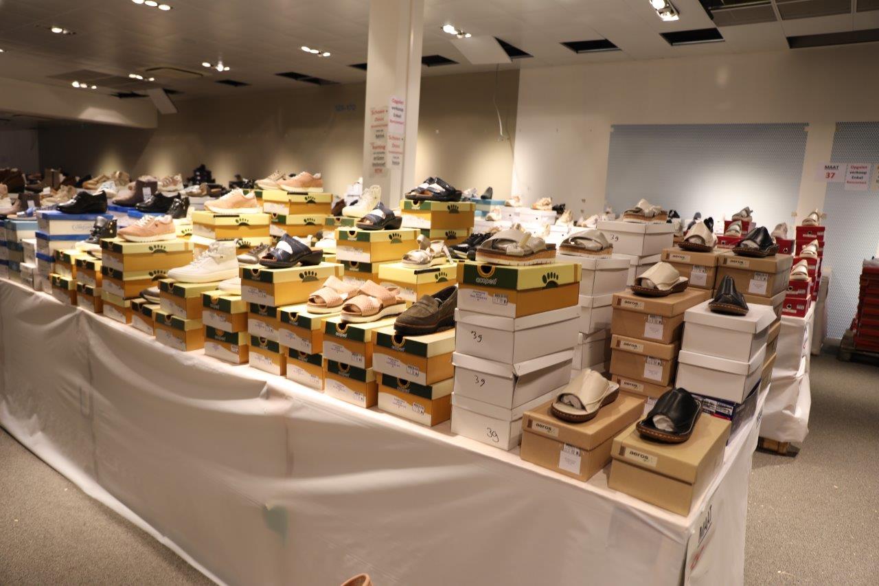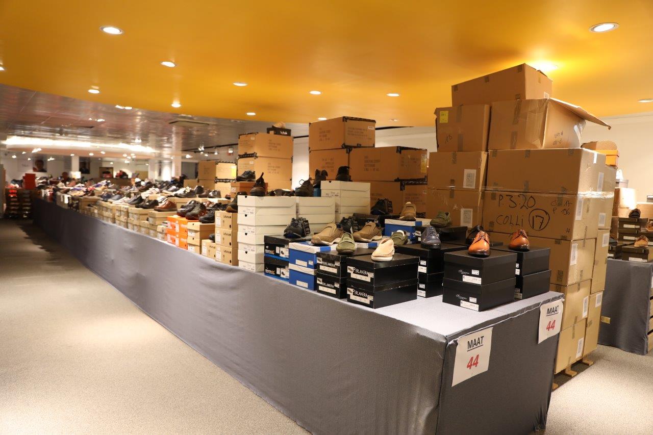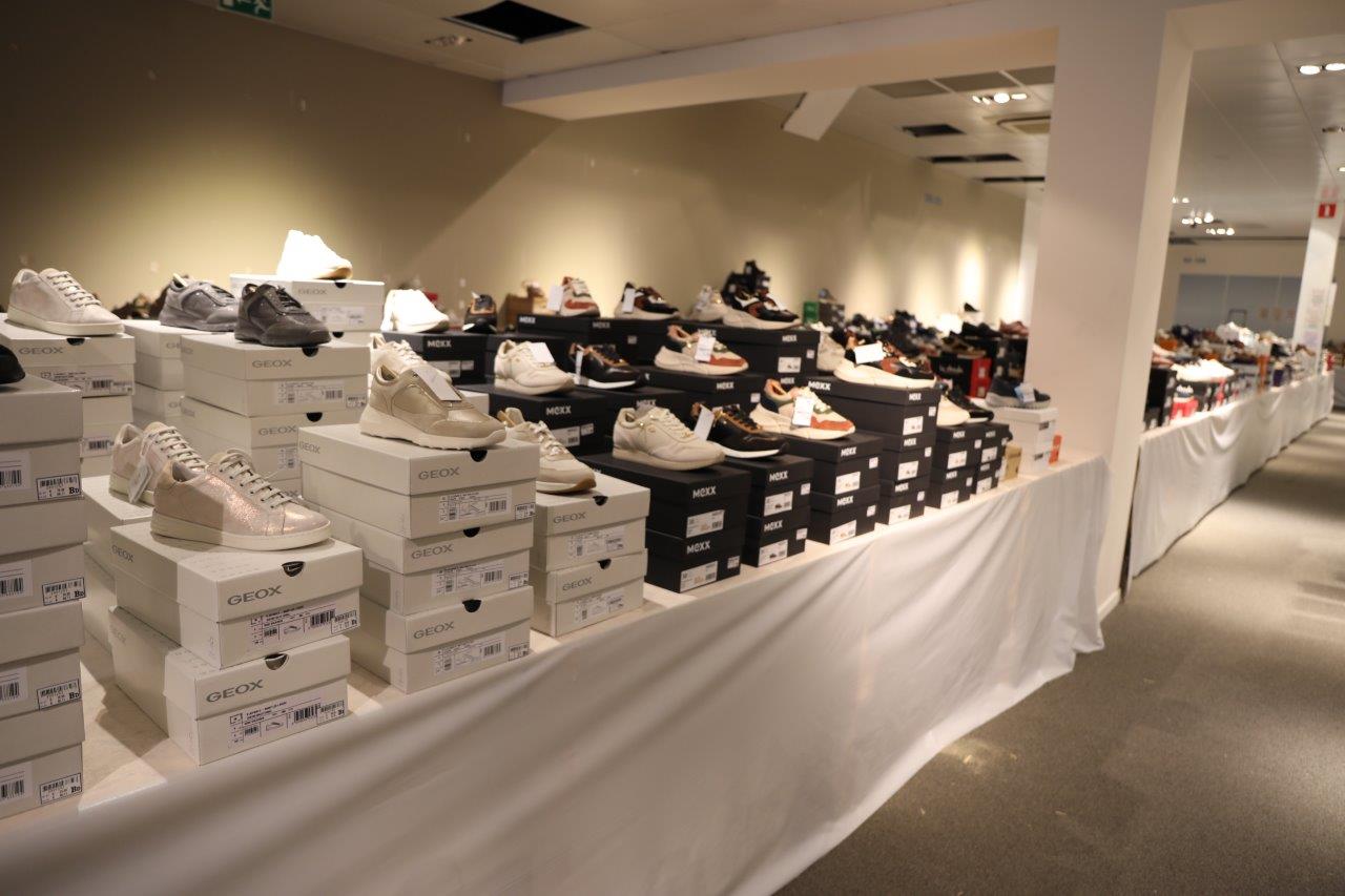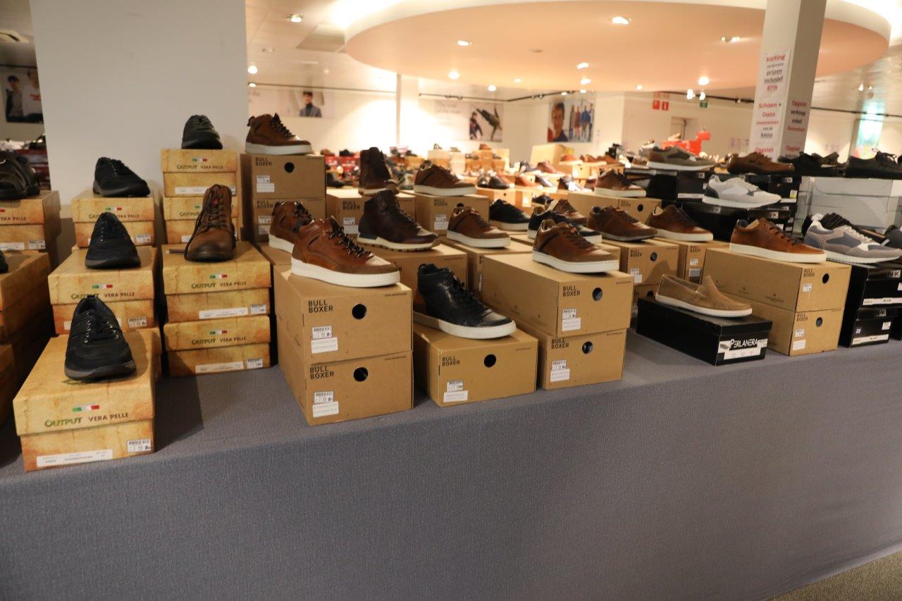 De tijdelijke winkel biedt een grote collectie aan van merkschoenen, tegen een korting van 50 %.