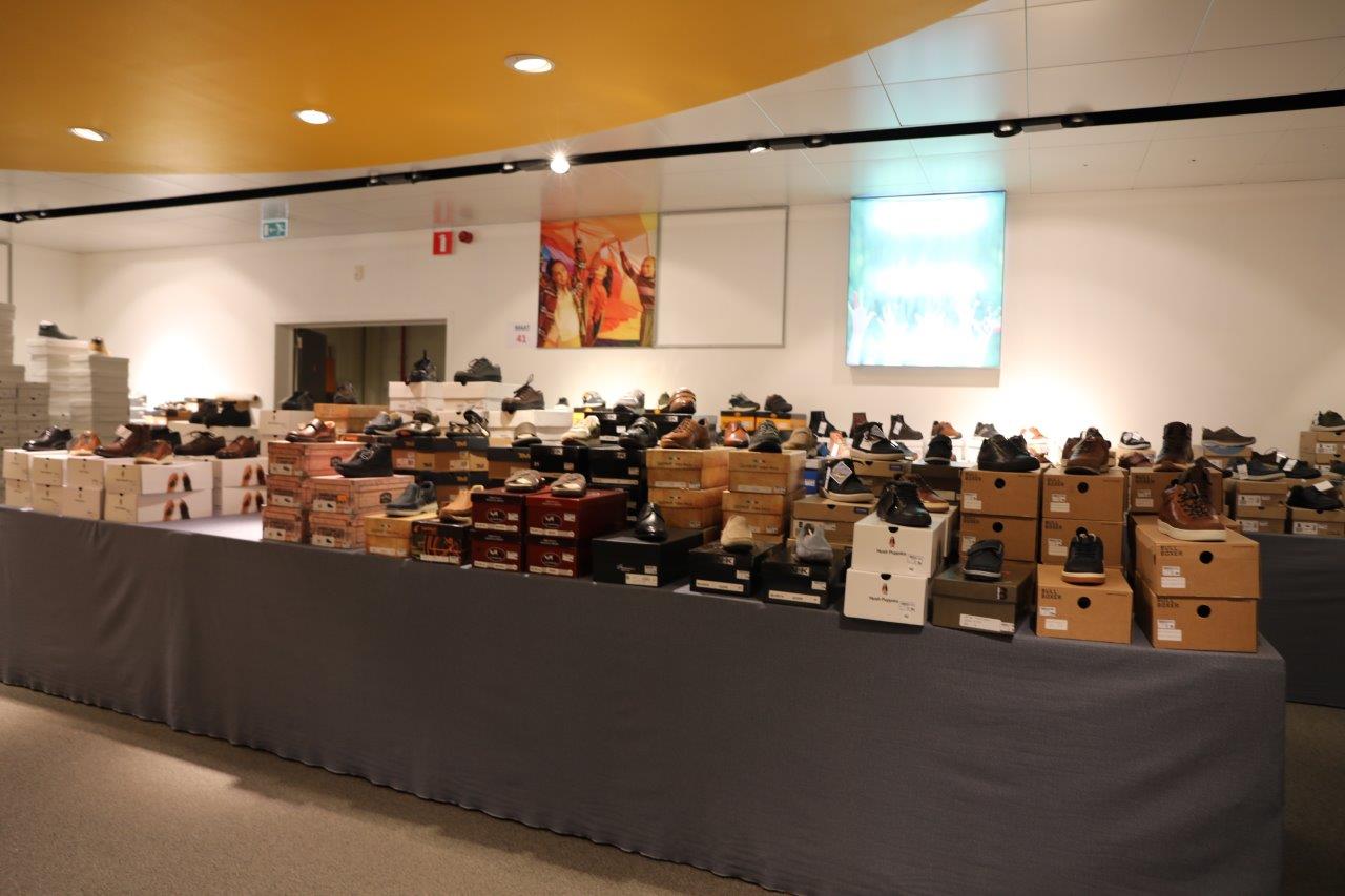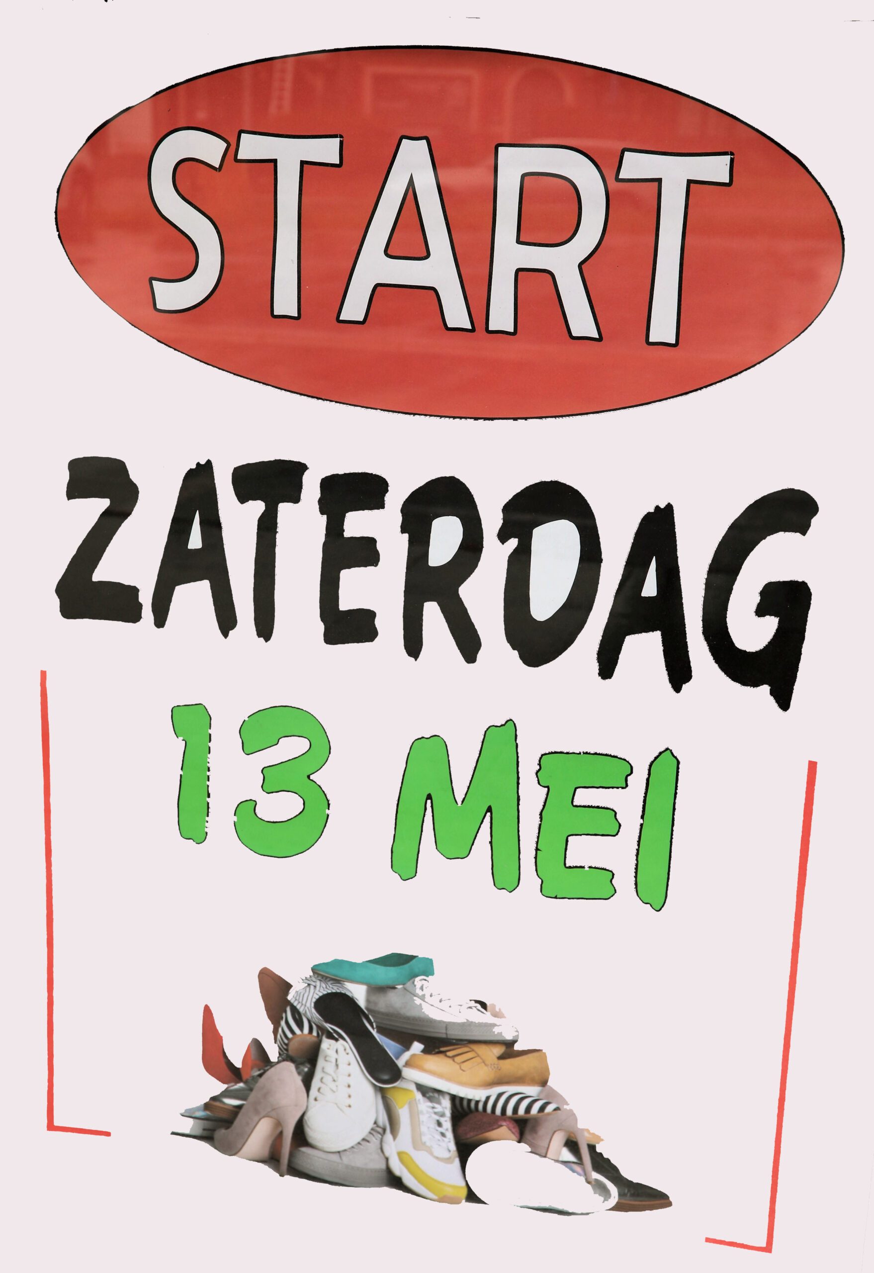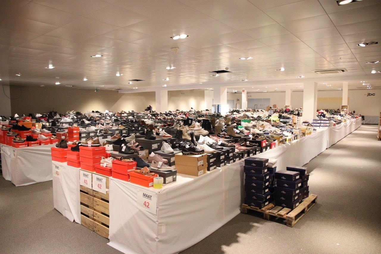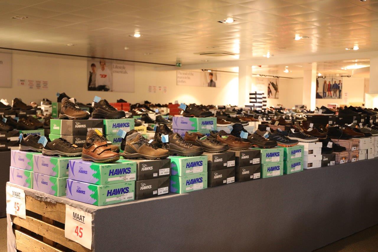 De tijdelijke winkel biedt een grote collectie aan van merkschoenen, tegen een korting van 50 %.