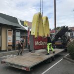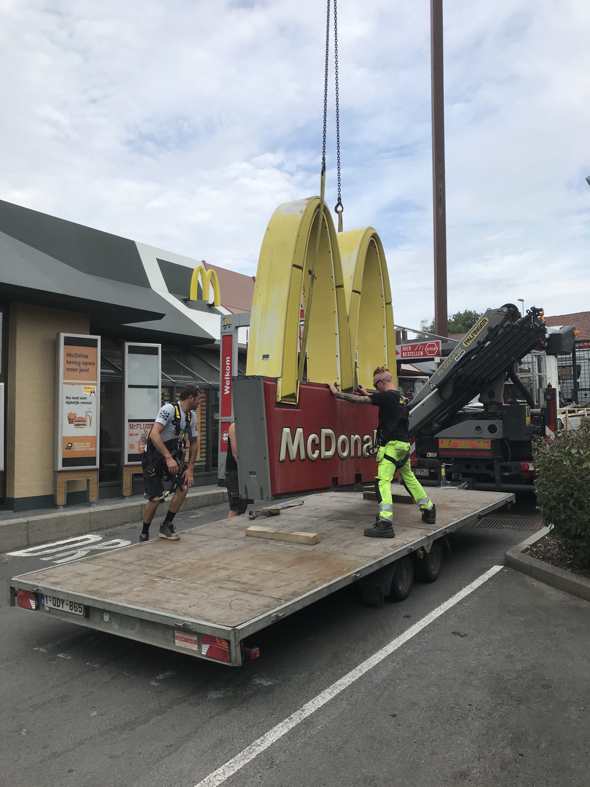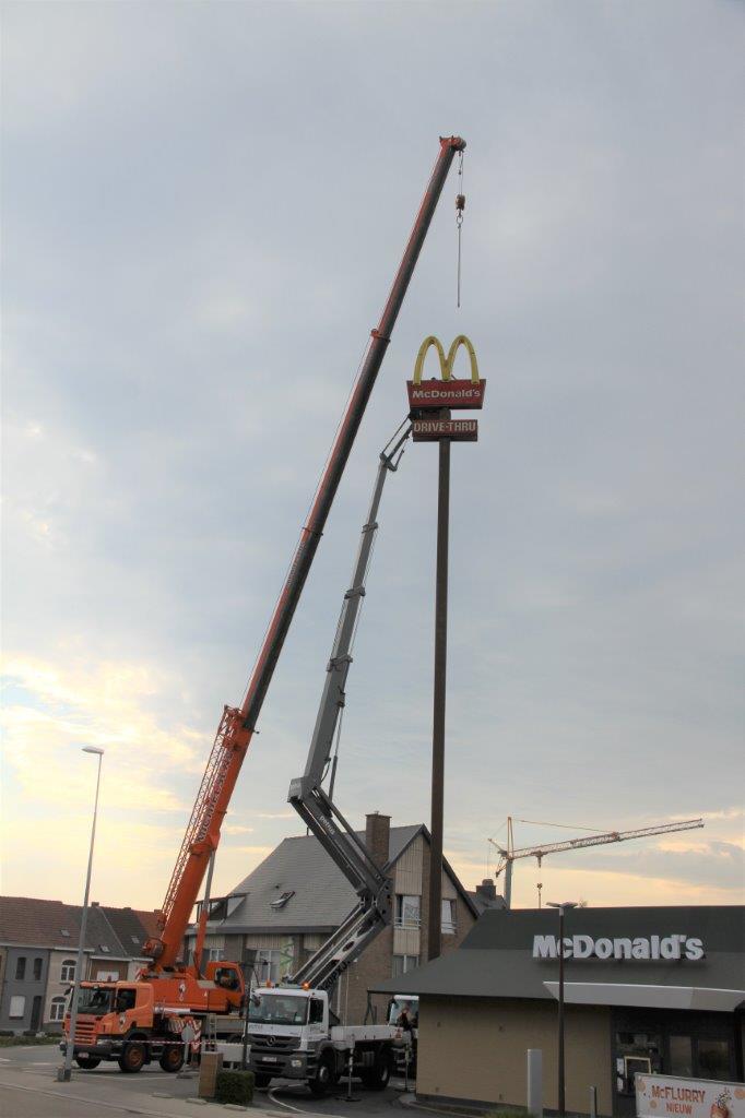 NINOVE – De grote ‘M’ van fastfoodketen McDonald’s is sinds deze week verdwenen van de 30 meter hoge pyloon. Voor even.
