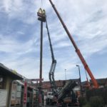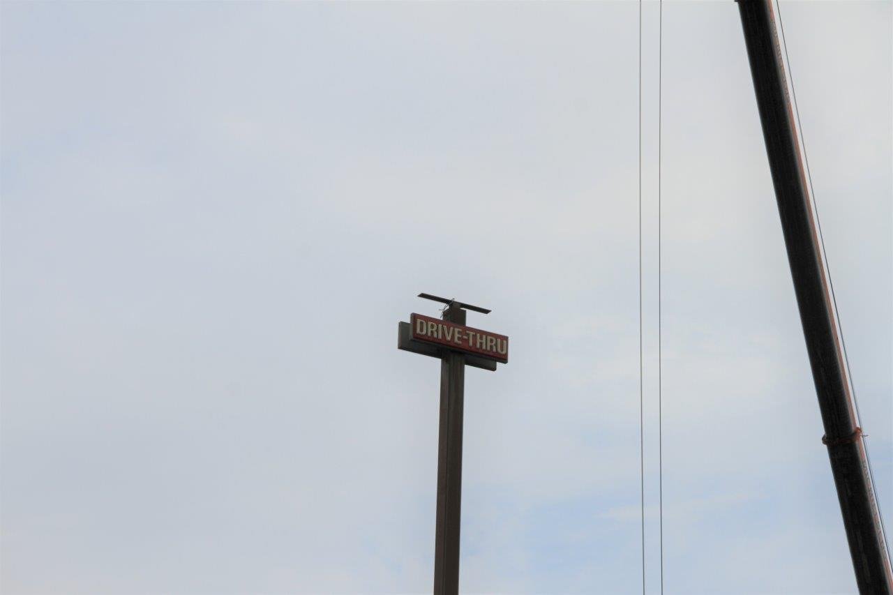 De pyloon blijft staan, krijgt een nieuwe antiroestbehandeling en een grijze afdeklaag. “Maandag 31 augustus laten we het nieuwe bord erop plaatsen. Tenminste als het weer het toelaat. Het oude bord was 5 m breed en 4 m hoog en zal toch wel rond een ton hebben gewogen. Daarom ook dat de paal stevig genoeg is en stormbestendig.”