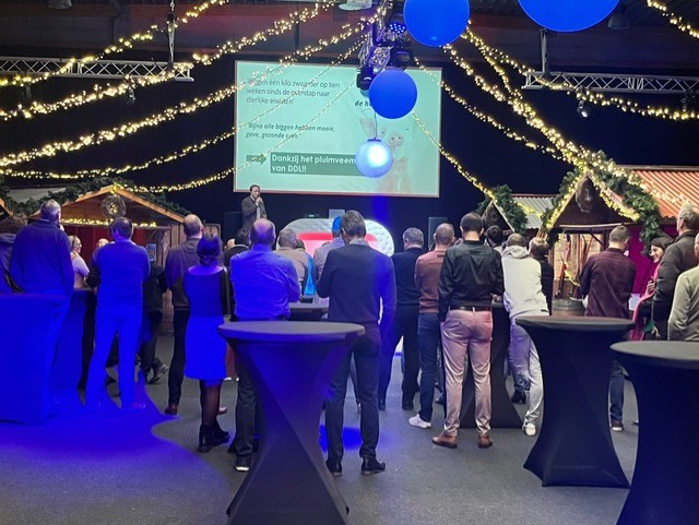 Ook aanwezig: een podium met beamer, ideaal voor toespraken, presentaties of awarduitreikingen.