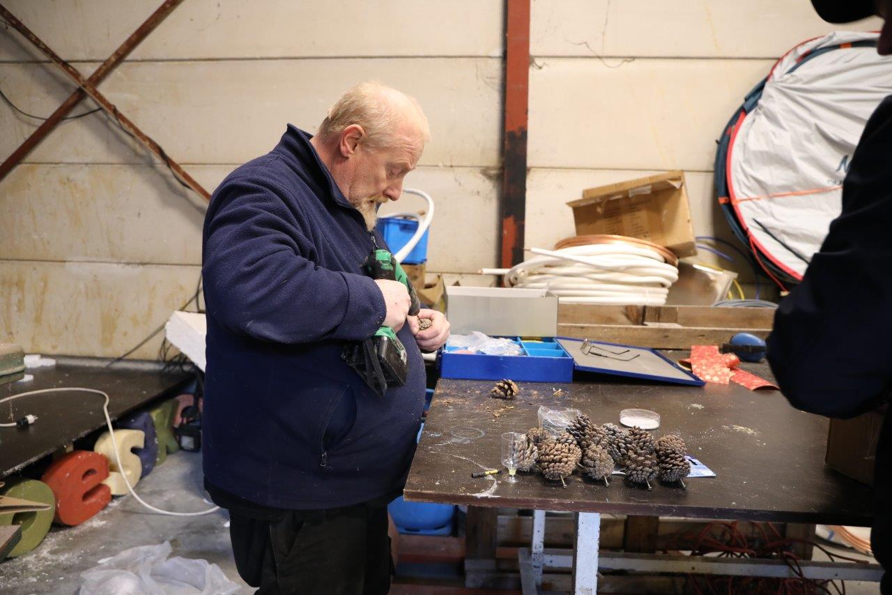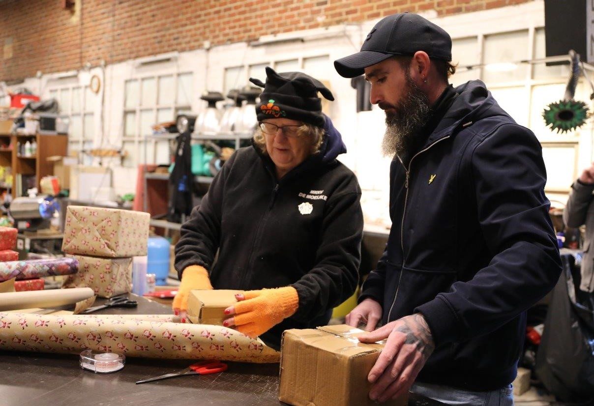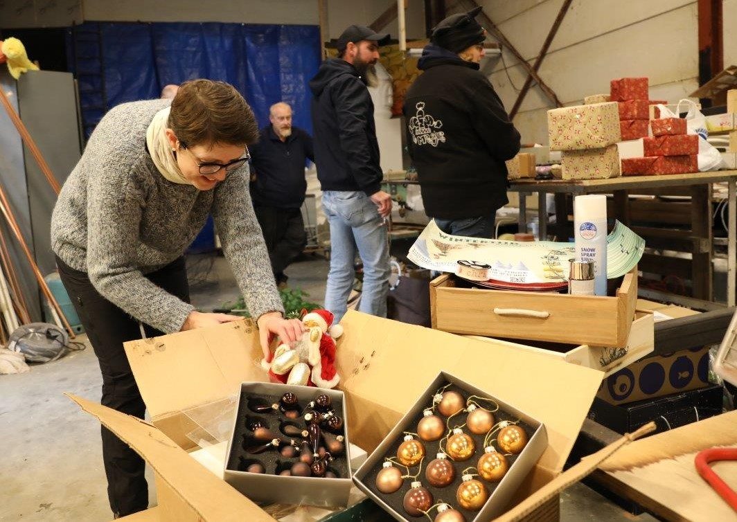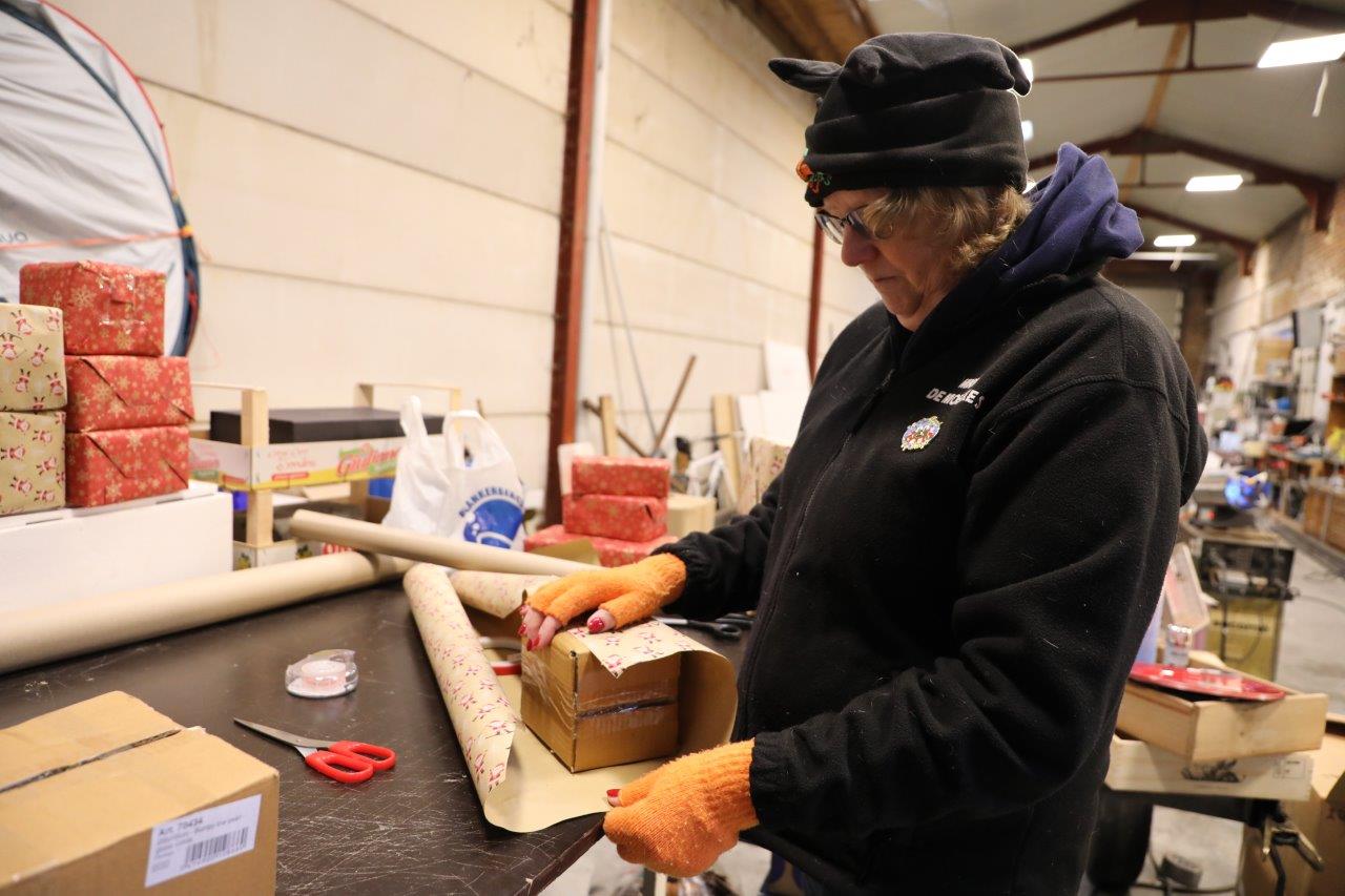 Hiervoor moeten ze ook tal van pakjes voorzien van geschenkpapier. De hangar, waar normaal carnavalswagens worden gemaakt, is tijdelijk omgetoverd tot de werkplaats van de kerstman.