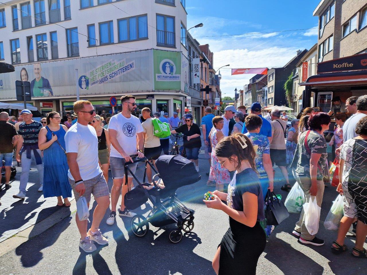 Enkele duizenden mensen waren afgezakt naar het centrum. Naast het zoeken naar een parkeerplaats voor de auto of de fiets was het nadien drummen tussen de kraampjes.
