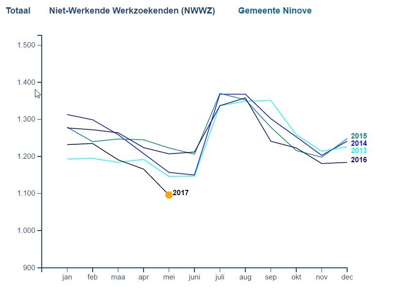 Het gaat de goede weg op met de werkloosheidscijfers in Ninove. Afgelopen maand was de beste in vijf jaar. Ten opzichte van de maand april daalde het aantal werklozen met 70. Dit is een daling van 6%. Een vergelijking met de maand mei 2016 levert nog spectaculairdere cijfers op met een daling van 9,2%.