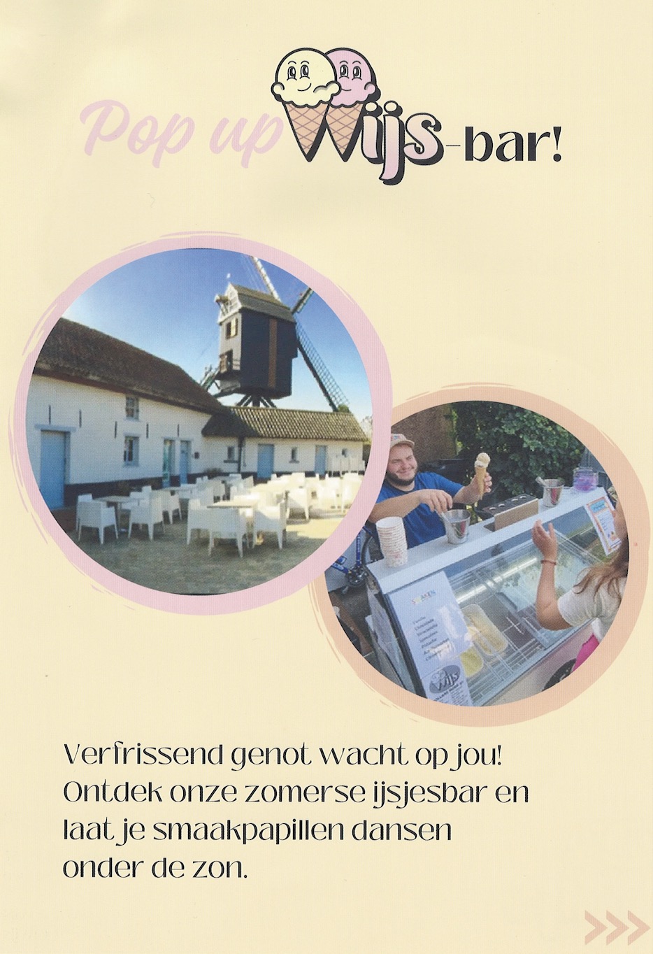 “Thuis in Pollare maak ik ijs in bijberoep”, legt de ijscrèmeman ons uit. “Ik wil het deze zomer aanbieden in een leuke setting, waar mensen kunnen neerzitten om een ijsje of een coupe te eten en iets te drinken. De Zepposmolen in Onze-Lieve-Vrouw-Lombeek is daarvoor ideaal. Bij eventueel slecht weer, kunnen de mensen ook in de zaal terecht. Al hopen we natuurlijk wel op mooi zomerweer.”