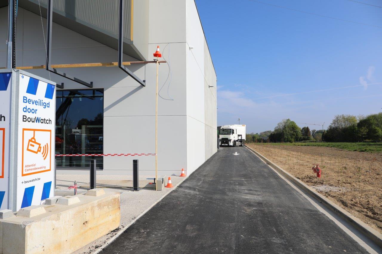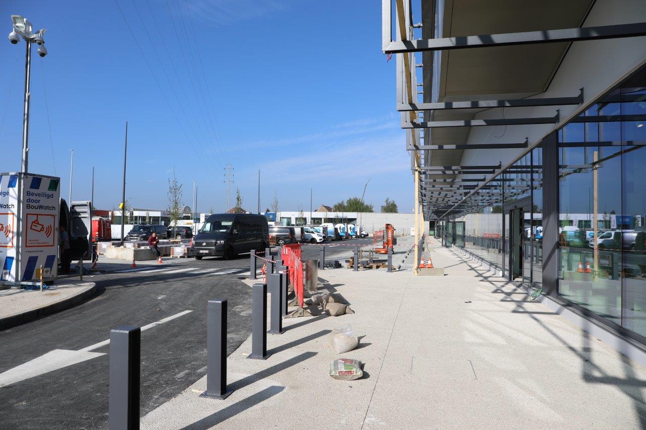 De leveringen zelf gebeuren via een dienstweg aan de achterzijde van de gebouwen, gescheiden van de klantenparking.