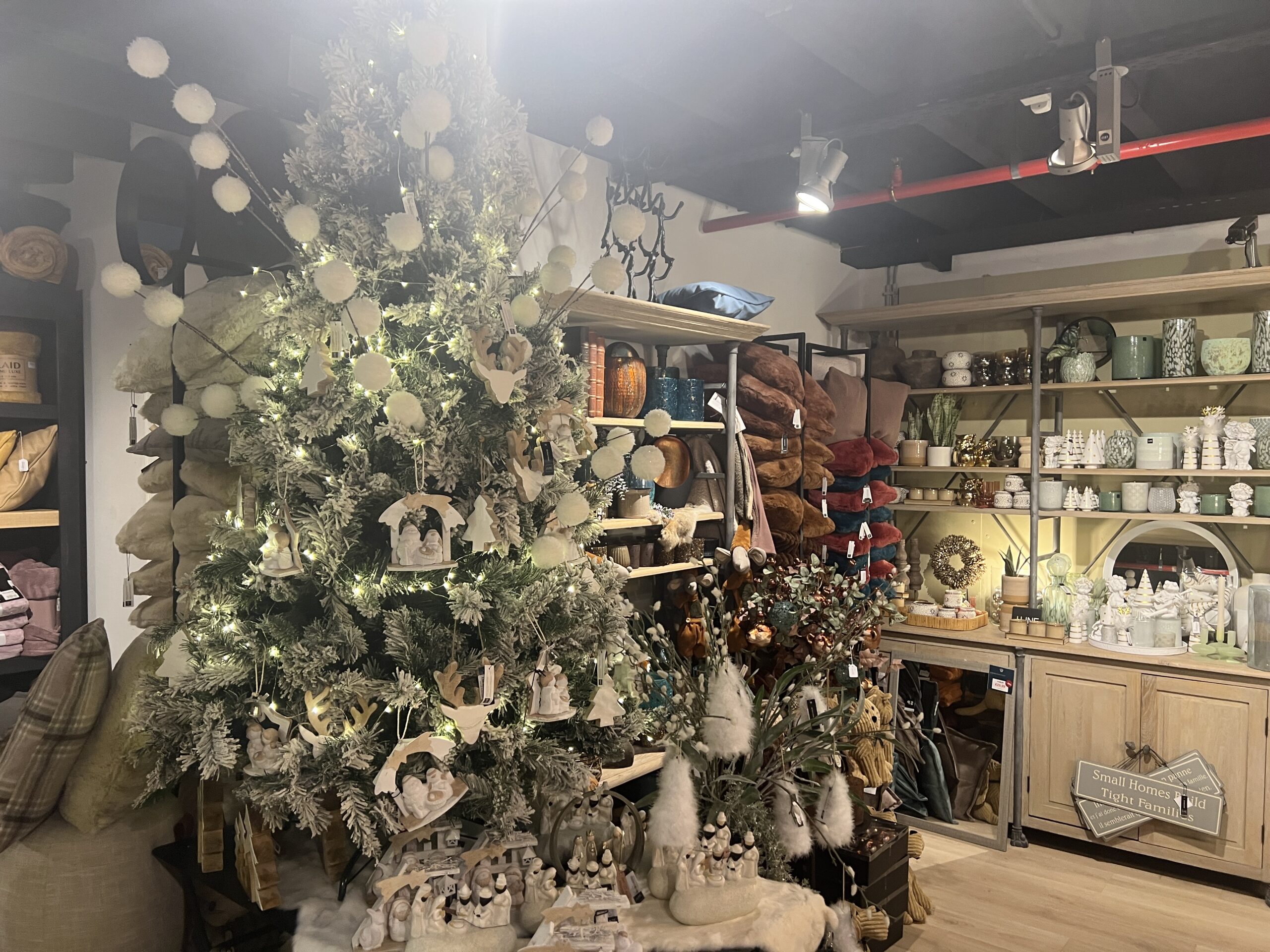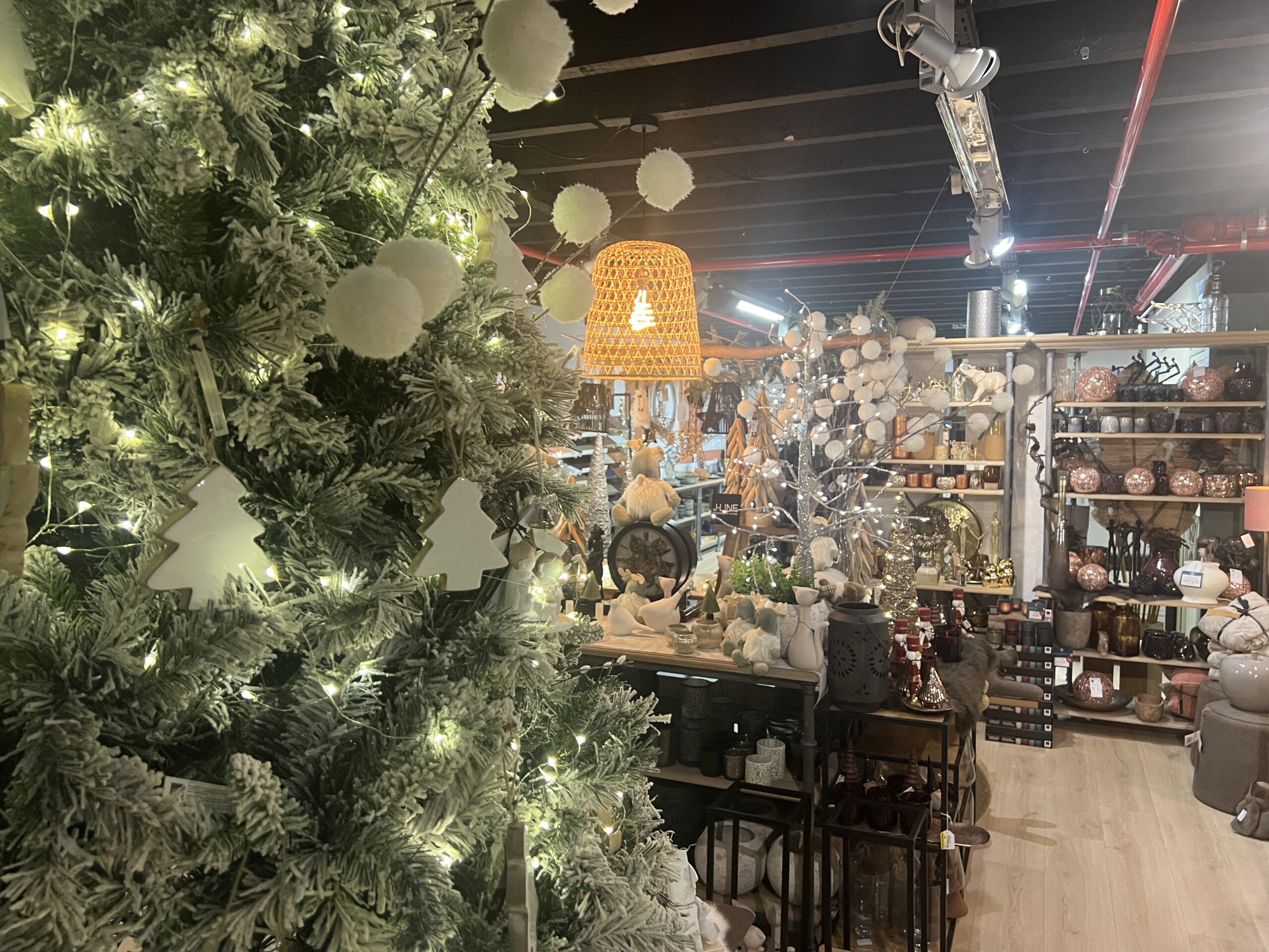 Op het gelijkvloers staat de kerstversiering al klaar in de afdeling decoratie.