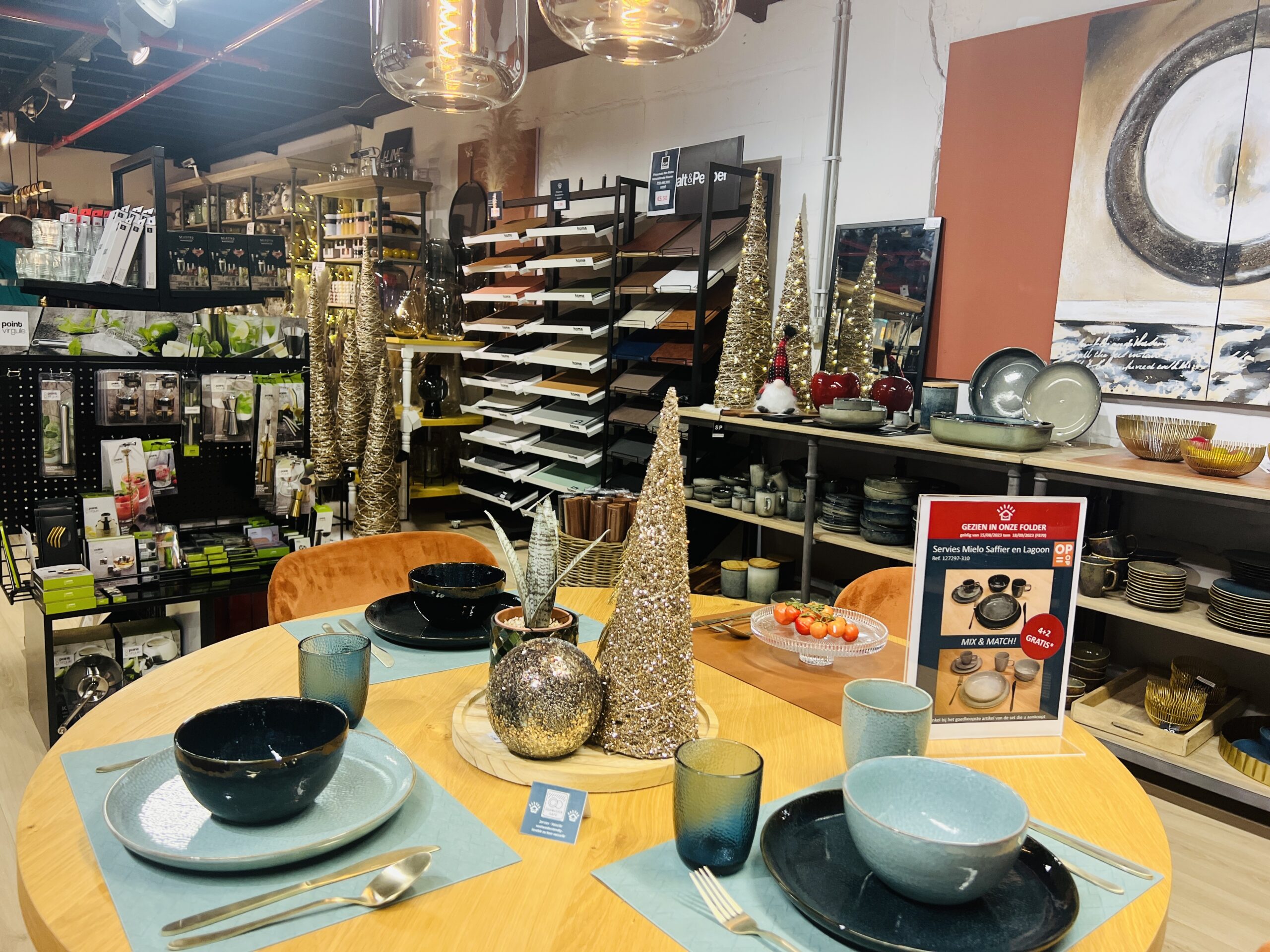 “Elk jaar toveren we deze om tot een heus kerstdorp. We moeten er ook vroeg bij zijn, want de klanten beginnen er steeds vroeger aan om alles te voorzien voor een leuke kerst. We zien heel veel nieuwigheden in beeldjes en vaasjes om de tafel te decoreren. Elk jaar proberen wij mee te zijn met de mode door de juiste dingen uit te kiezen voor onze klanten. De inrichting gebeurt door onze adviseurs, samen met de collega’s van aankoop. Ook daarin steken we heel wat werk en we zijn blij, dat het tijdig is afgerond.”