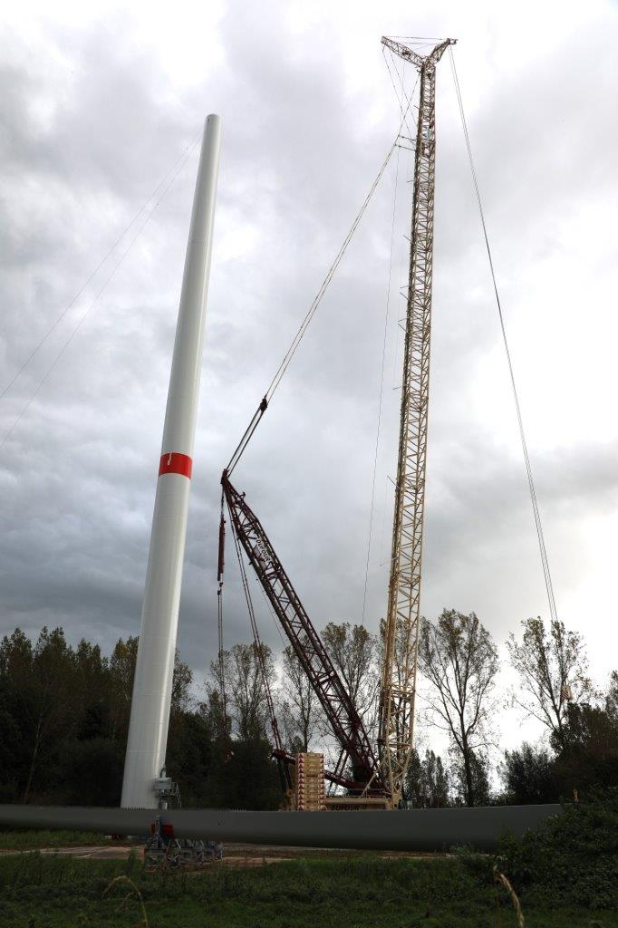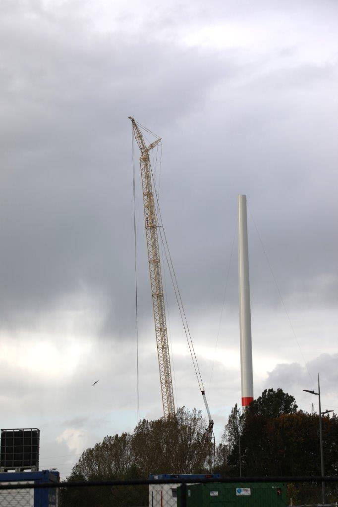 Komende week gebeurt de plaatsing van de turbine, waarop aansluitend de wieken worden gemonteerd.