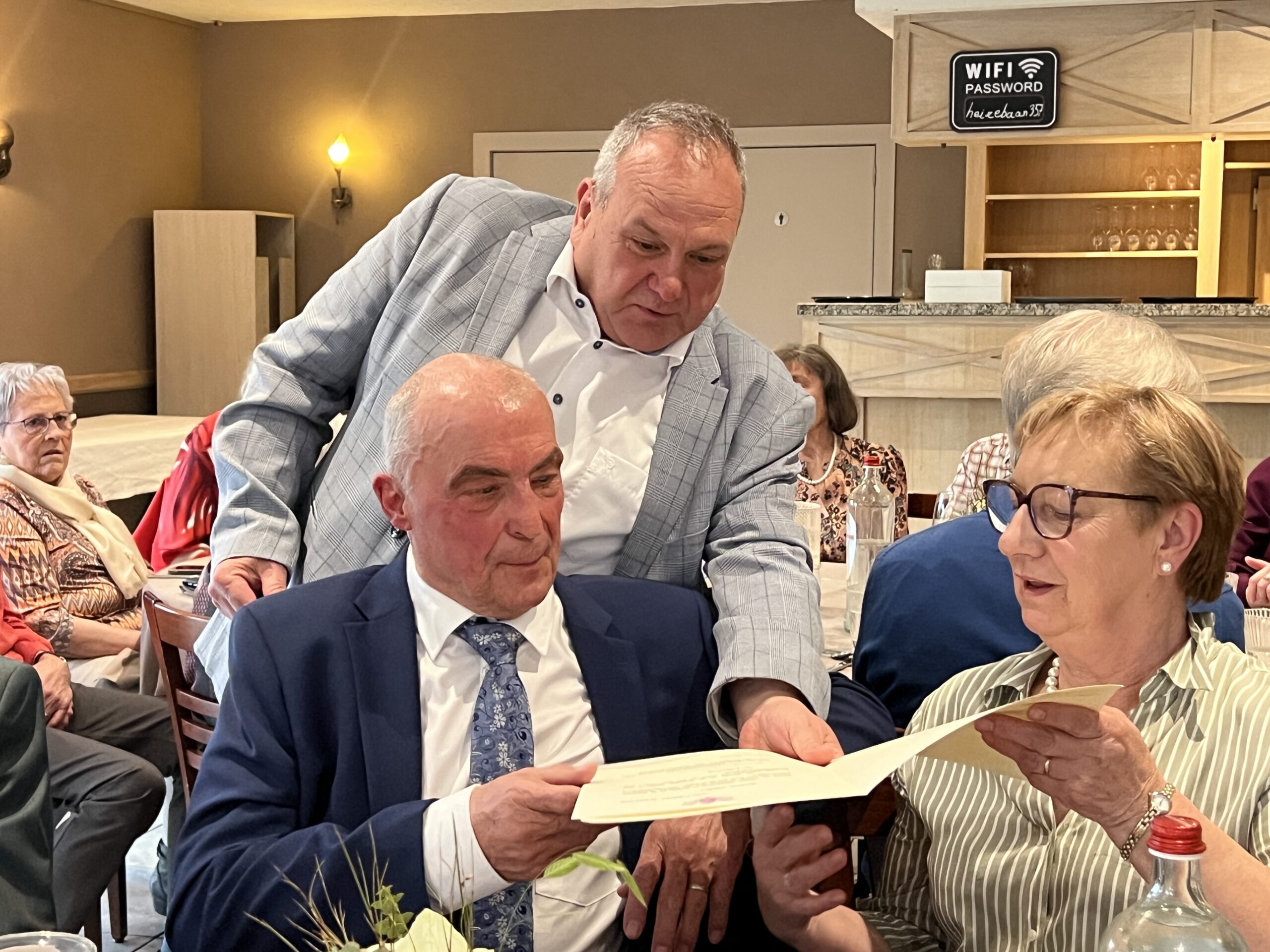 Burgemeester Guy D’haeseleer was aanwezig met een delegatie van het schepencollege: Rudy Corijn, Pascal Schietecat, Dany Goessens, Ilse Malfroot en Malika Sclacmender. Zij overhandigden de jubilarissen een diploma.