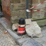 De omgeving is afgezet met een hekwerk totdat de toestand opnieuw veilig is. Dat zou een tijdje kunnen duren, gelet op de grote schade. Er zal overleg nodig zijn met Monumentenwacht voor de herstelling.