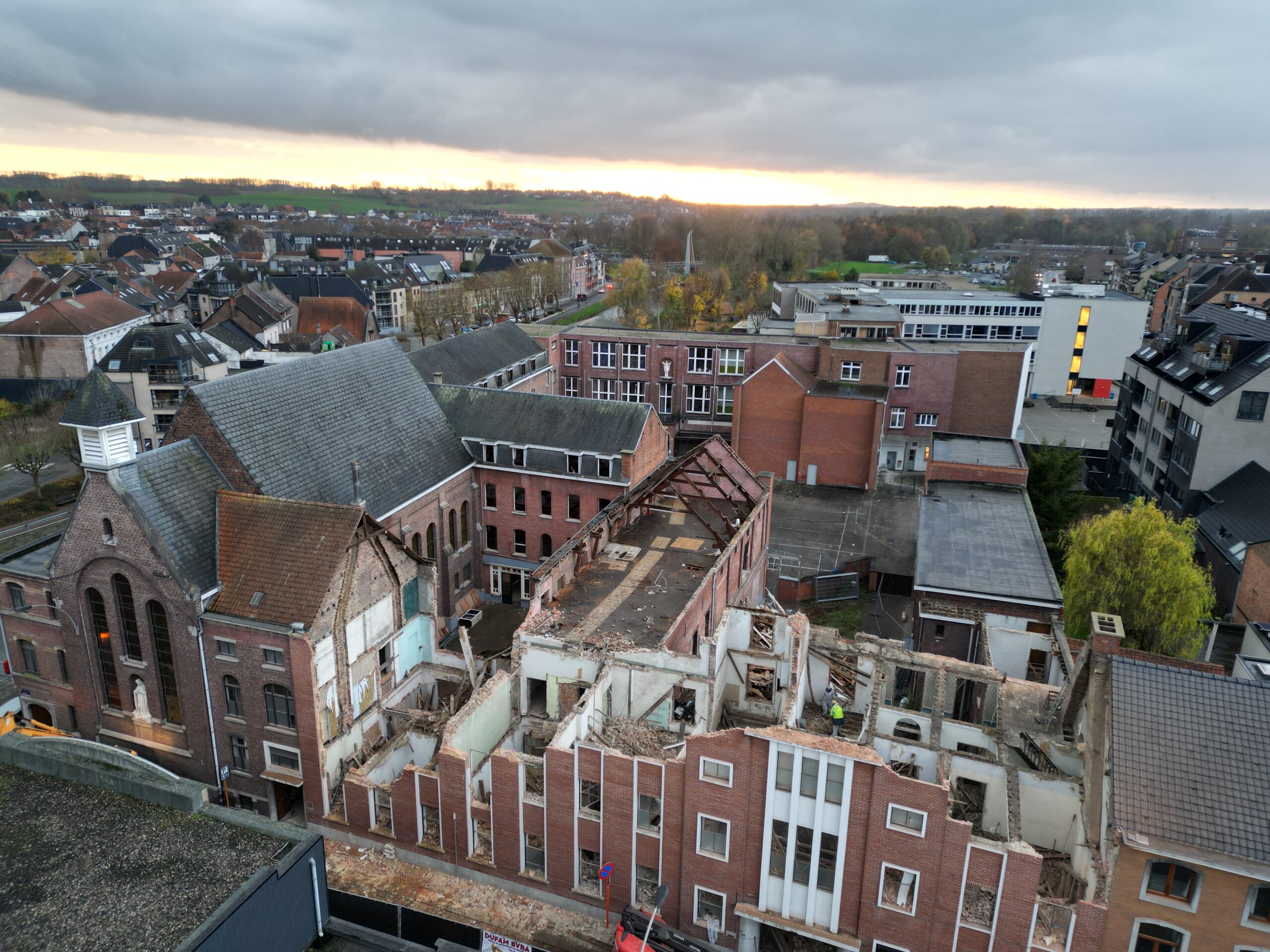 Marc De Rijck (voorzitter raad van bestuur Hartencollege): “De afbraak is inderdaad al enkele dagen bezig. Binnenin is al heel veel weg en tegen eind januari zou het gebouw moeten zijn afgebroken. Nadien laten we daar een soort park aanleggen. De gevel van de kapel wordt proper gemaakt en daarna starten de werken voor de renovatie van de kapel zelf en het achterliggende gebouw langs de Dender. Maar dat alles is natuurlijk afhankelijk van de vergunningen.”