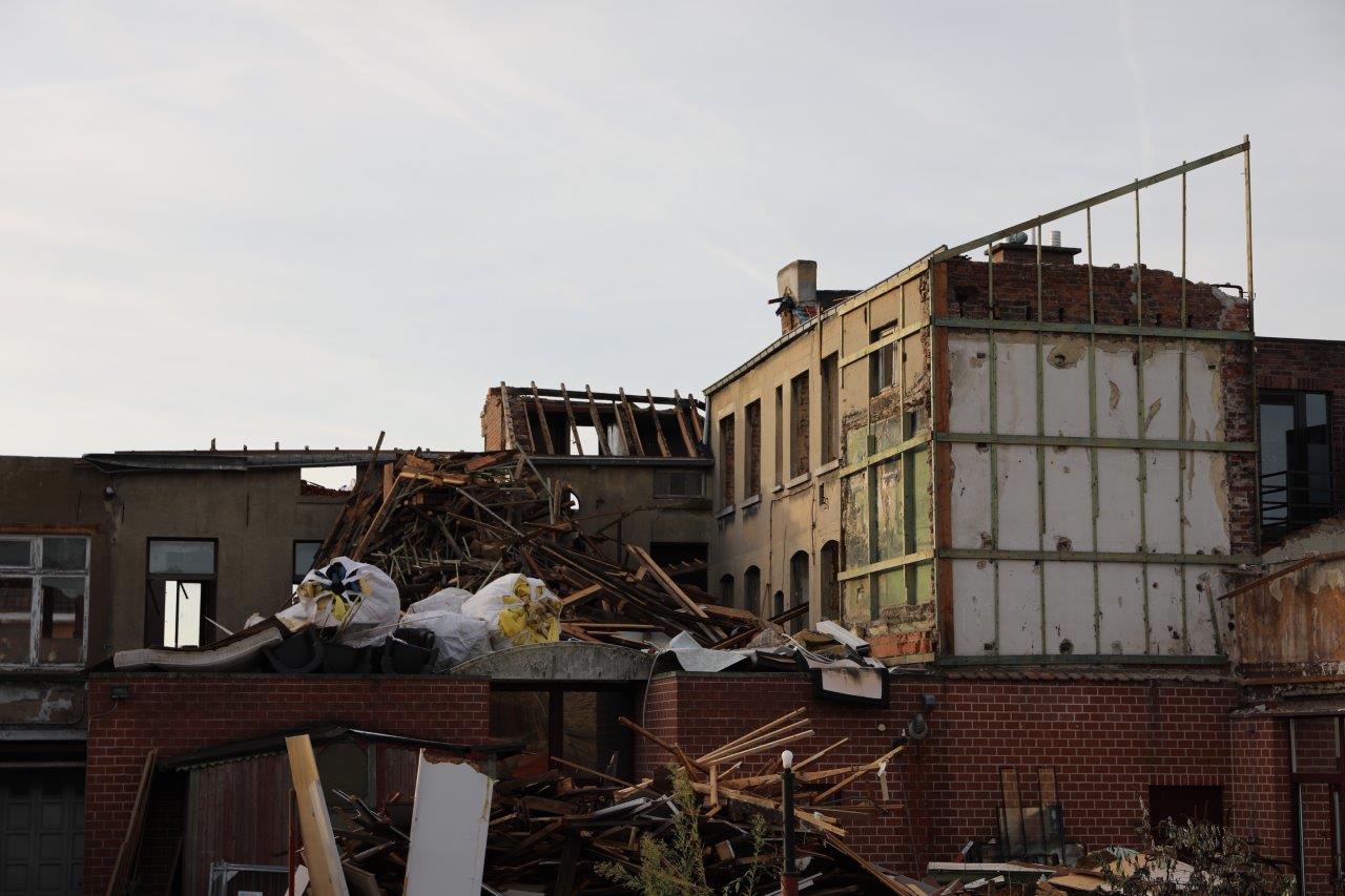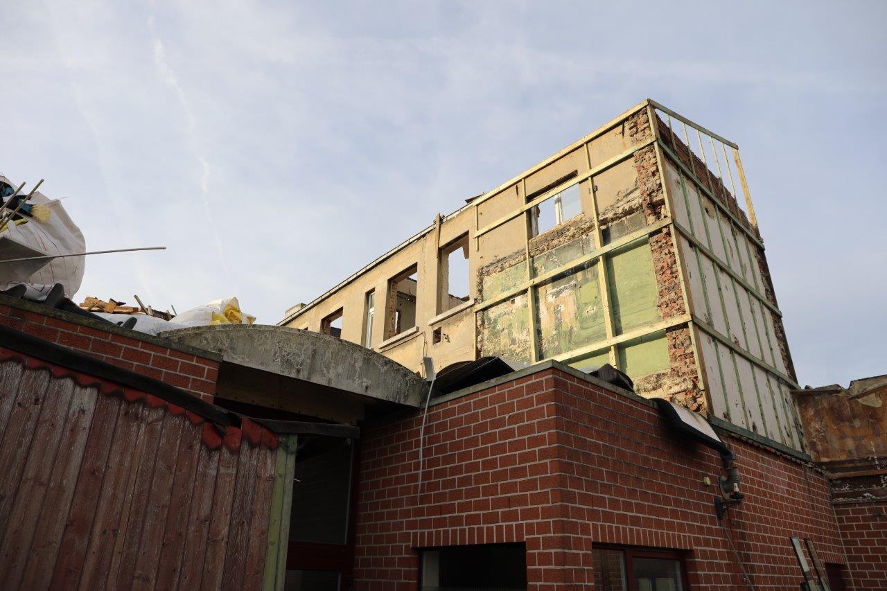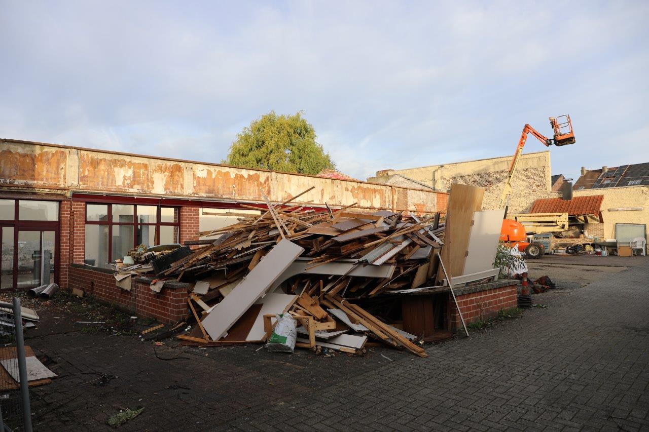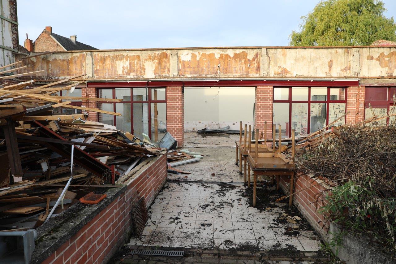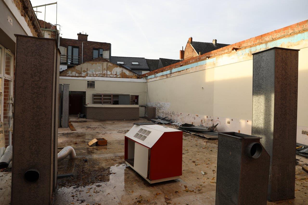“Maar alles wordt gesloopt. Het gebouw is rot tot en met, opgeleefd. Met veel geld, wat we niet hebben, was misschien nog iets te doen. Maar je moet eens zien wat nu bovenkomt. We hadden gehoopt om nog een deel van de gevel te recupereren, maar dat bleek onmogelijk. Die gevel was ook al niet meer de originele; hij is zeker al een keer verbouwd.”