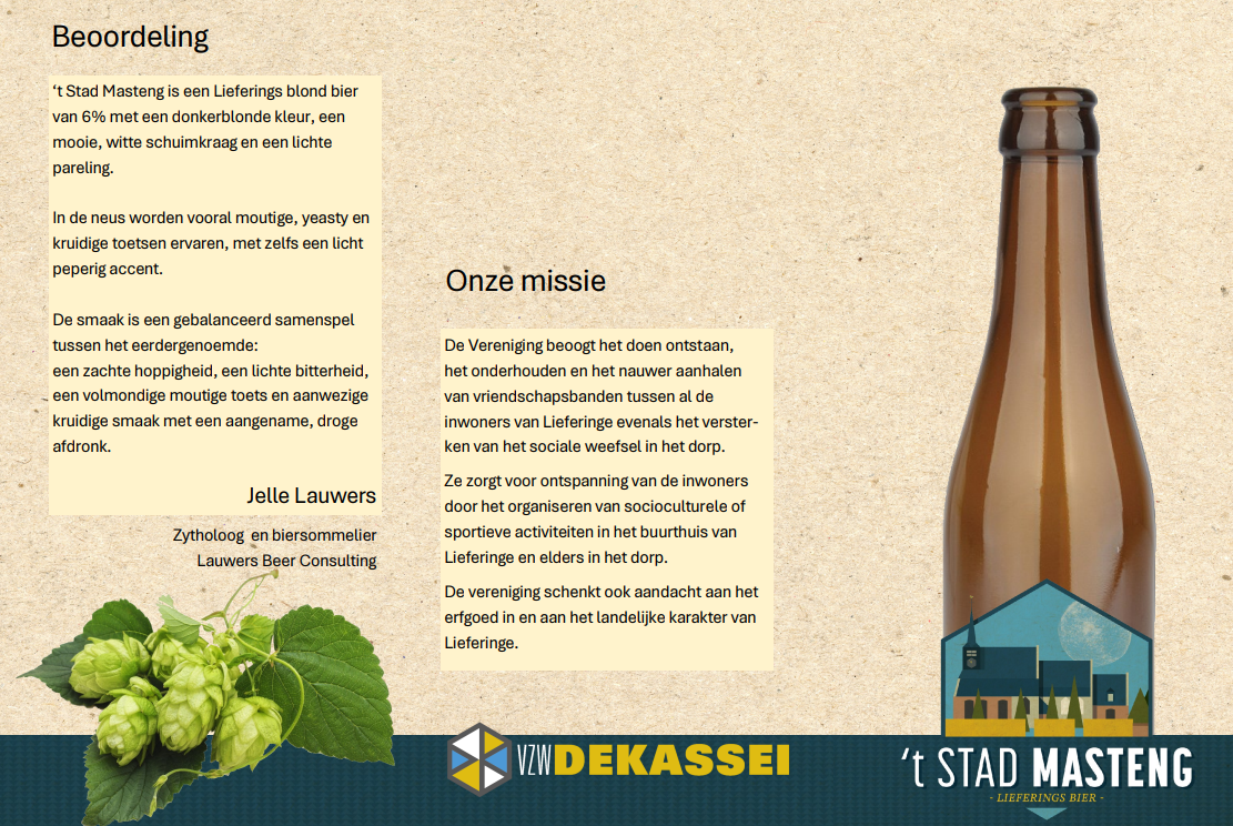 LIEFERINGE – De vzw De Kassei wil een kunstwerk plaatsen op de site, waar ooit de beroemde Beddenpisserskapel stond. Als het begin van sponsoracties en een publieksfinancieringsronde lanceerde de vzw een eigen bier: ’t Stad Masteng.