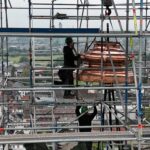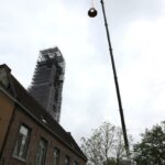 Binnenkort verdwijnen de stellingen rond de toren. “De komende twee weken gebeuren nog nabehandelingen aan de torengevel. Half juni zal een andere firma de stellingen dan demonteren, wat 2 tot 3 weken zal in beslag nemen.”