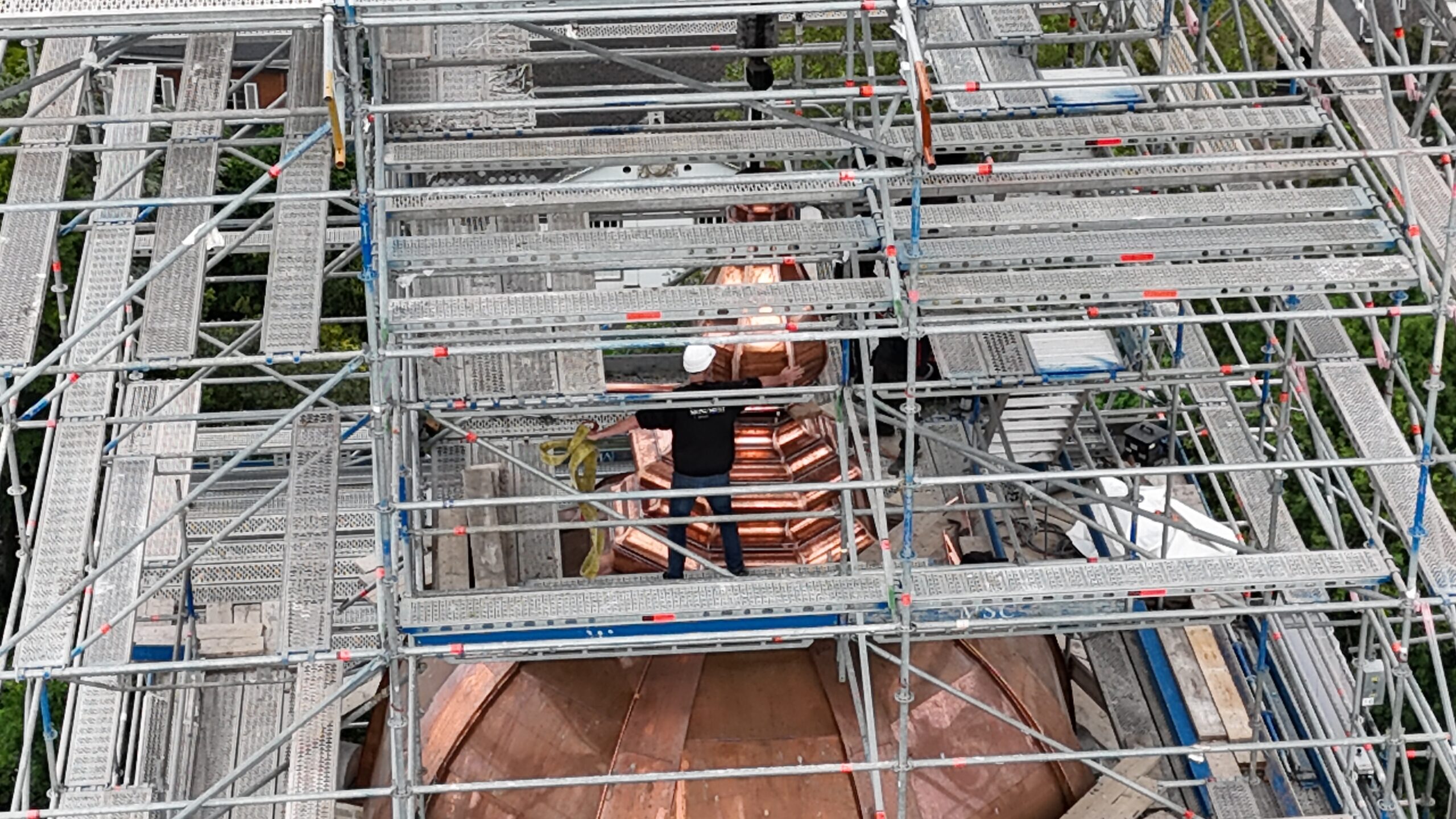 Zowel de firma uit Dinant, die de nieuwe koperen koepel heeft gerealiseerd, als het restauratiebedrijf Monument zelf waren overigens betrokken bij de heropbouw van de Notre-Dame in Parijs. “Monument is inderdaad een monument in de sector. Die firma heeft ervaring zat. Ik sprak met een dakwerker, die al 35 jaar op die hoogtes werkt. Dat is voor die man de job van zijn leven, net als voor zijn collega’s; mensen met passie.”
