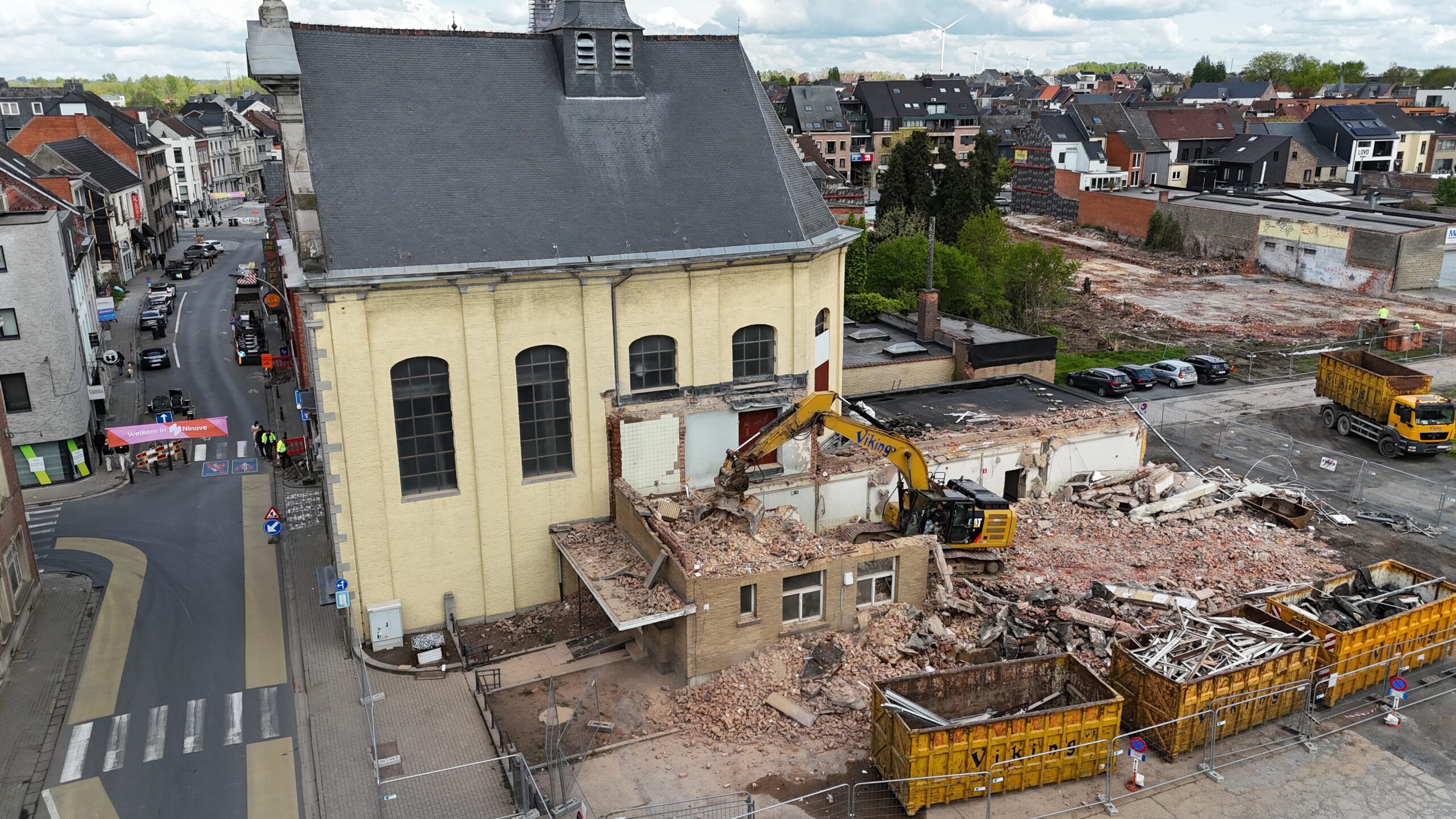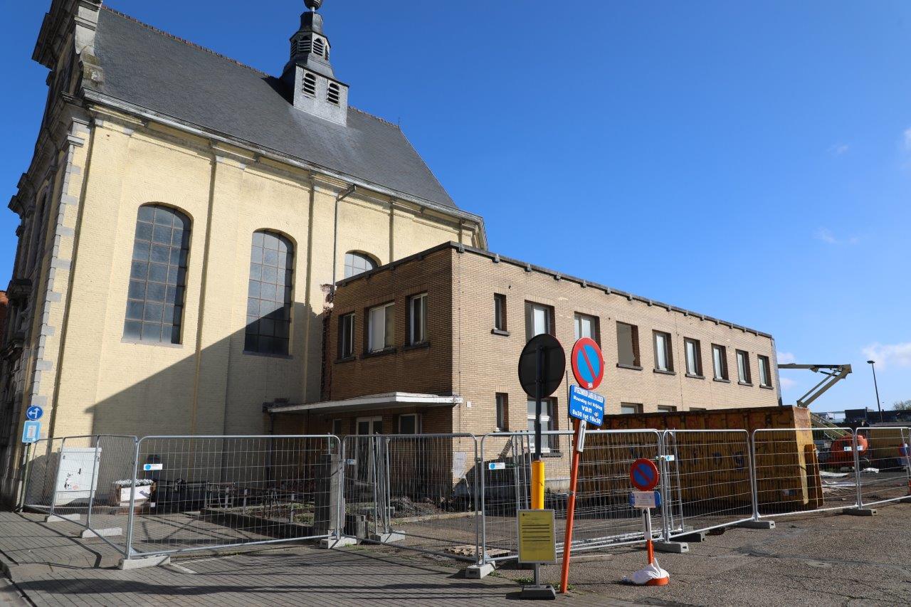 Dat gebeurde vrijdag 12 april. “De technieken zoals de verwarming en de elektriciteit zijn losgekoppeld, zodat de kapel zelf tijdens de werken verwarming en stroom kan blijven functioneren. Maandag 15 april is dan de sloop van het bijgebouw gestart. Die operatie duurt een tweetal weken. SOLVA op 22 april met het archeologisch onderzoek. De duur daarvan is afhankelijk van wat de archeologen zullen aantreffen. De site is wel al een aantal keren omgewoeld, de laatste keer tijdens de restauratie van de kapel. Maar je weet nooit op een dergelijke plaats in de oude kern van de stad.”