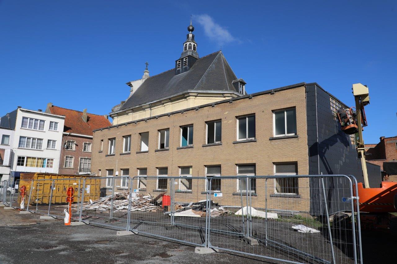 Een gespecialiseerde afbraakfirma is gestart met het leegmaken van het bijgebouw en het verwijderen van de ramen. Bij de sloop is omzichtigheid geboden, omdat het gebouw vasthangt aan de kapel, die dateert van 1775-1776. Ze is het enig bewaard restant van het stedelijk ziekenhuis. Het bijgebouw wordt manueel van de kapel losgemaakt. Na de afbraakwerken kan de bouw van het nieuwe toeristisch bezoekerscentrum van start gaan.