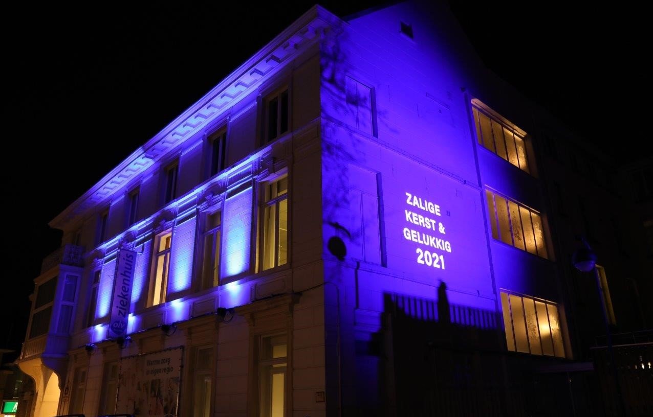 Met deze eindejaarverlichting wil het OLV-Ziekenhuis alle medewerkers danken voor hun inzet in deze corona-periode.