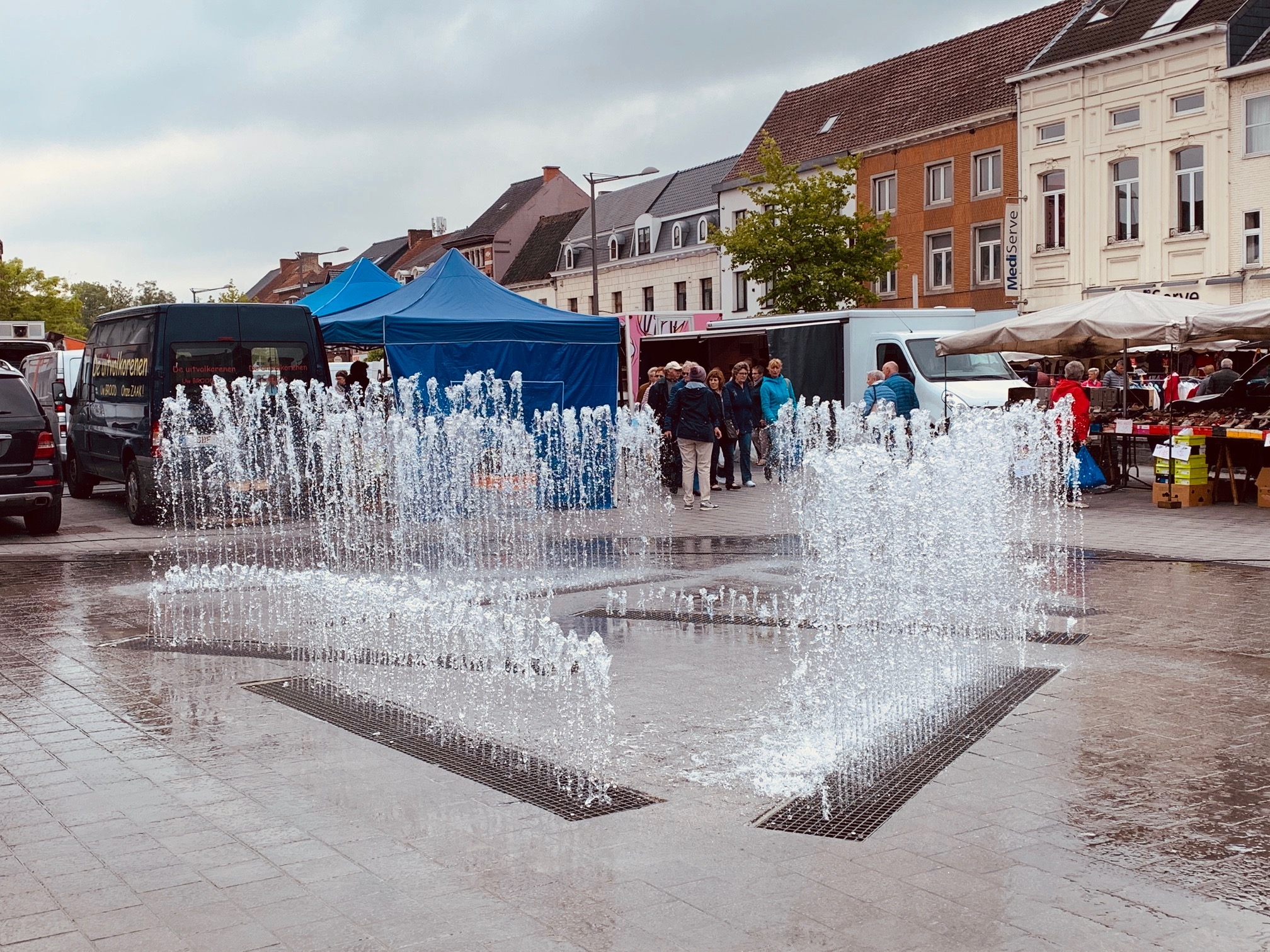 Eerder had een onfortuinlijke marktkramer zich bovenop de stilliggende fontein geposteerd. Tot die onverhoeds begon te werken en hem en zijn kraam onderspoot. Uitgerekend op de ‘Dag van de markt’, 9 april.