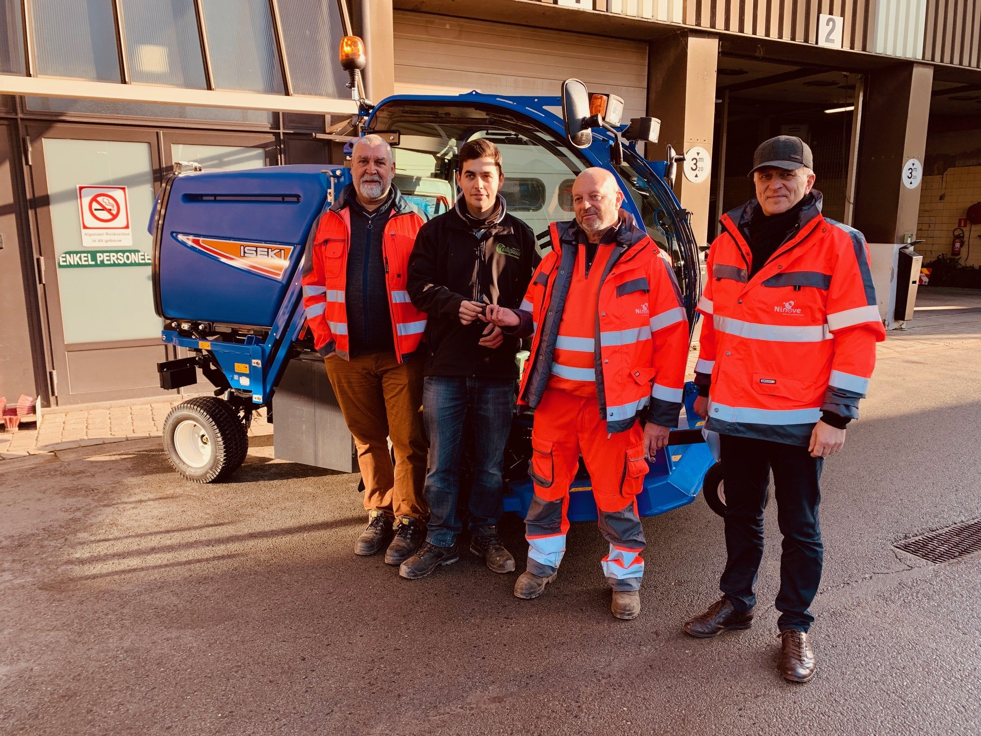 NINOVE – De firma Mignon uit Galmaarden overhandigde woensdag 18 december symbolisch de sleutel van een nagelnieuwe grasmaaier aan de groendienst. Alle personeelsleden van de technische dienst ontvingen ook nieuwe werkkledij.