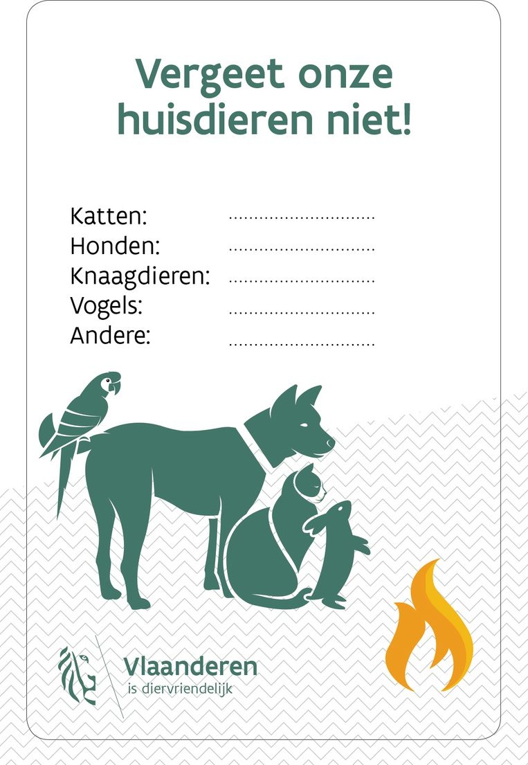 Heb je een huisdier, kom dan zeker een huisdierensticker halen. Met een watervaste stift noteer je er het aantal dieren op dat je hebt. Je hangt de sticker op je voordeur of een raam aan de straatkant.