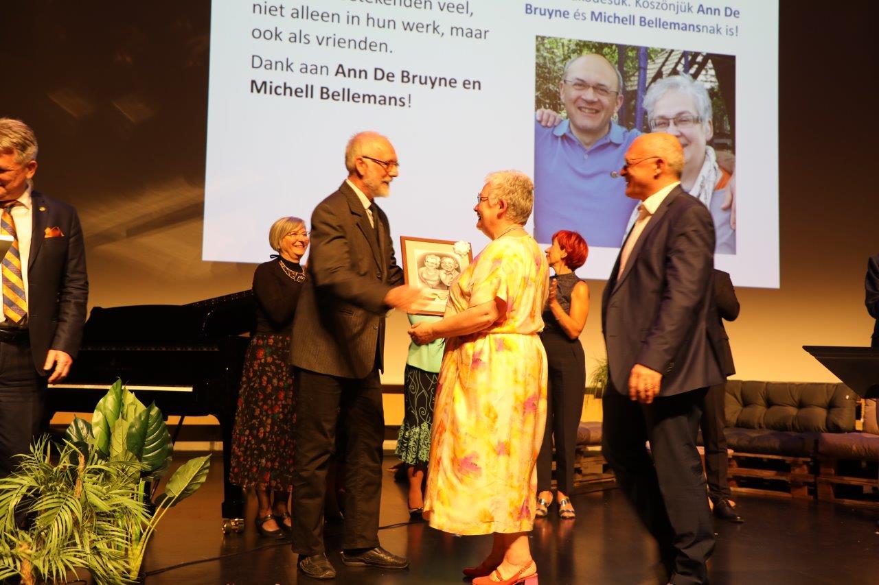 Na de vele toespraken, onder anderen door Michel Casteur, Tania De Jonge en Alain Triest, was er een receptie in café Den Belleman. Daar vloeiden de Hongaarse dranken rijkelijk en vierde de vriendschap hoogtij.