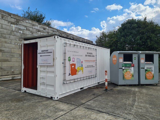 Op het recyclagepark dient de hergebruik-container vooral om bezoekers, die dit niet deden, alsnog de kans te bieden hun spullen niet te laten verloren gaan. Deze herbruikbare goederen vallen dan binnen de normale tarieven van een recyclageparkbezoek.