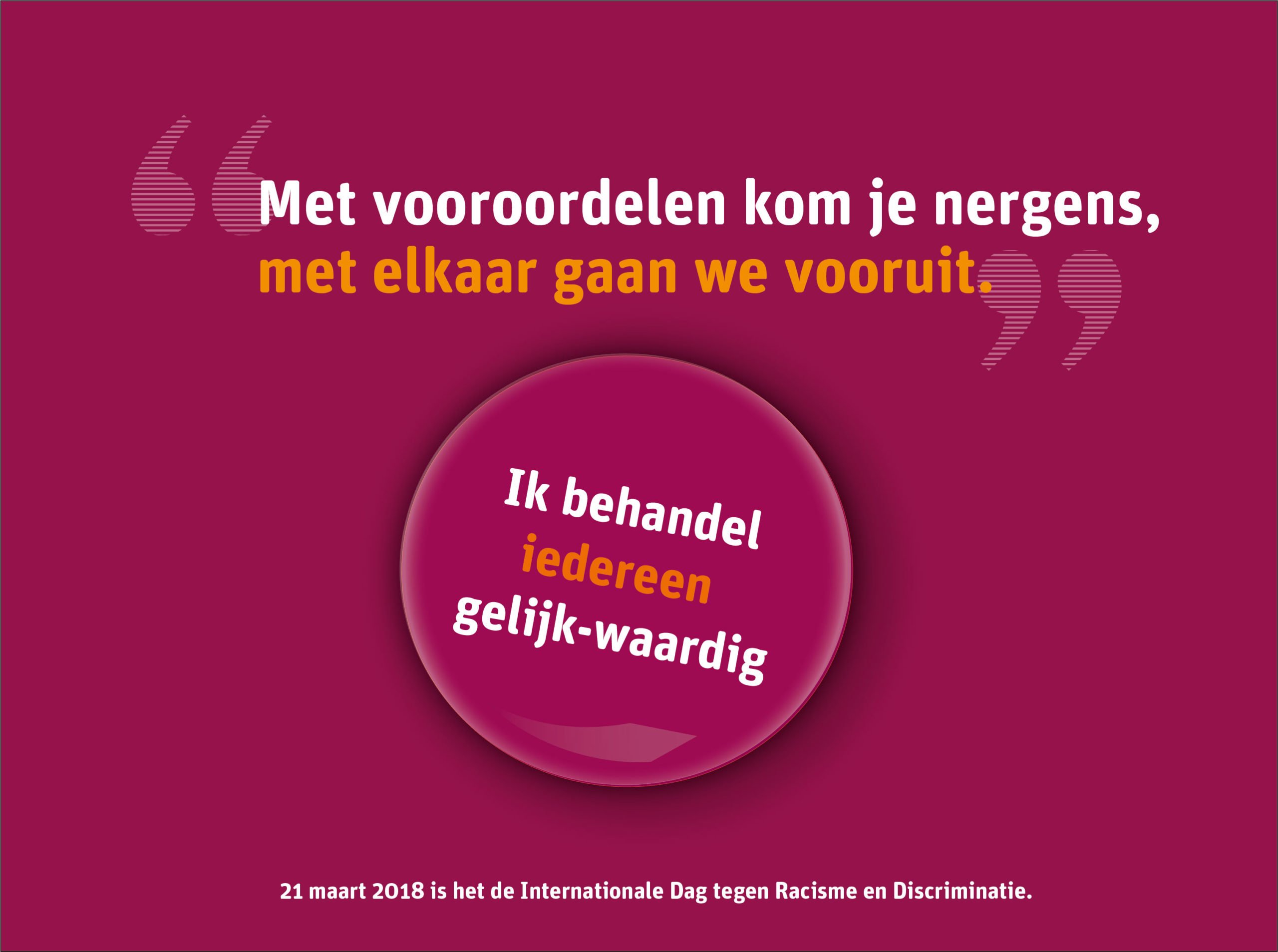 Unia (het interfederaal gelijke kansencentrum) deelde in Vlaamse steden en gemeenten buttons (knopen) uit in de aanloop naar de ‘Internationale Dag tegen Racisme en Discriminatie’ op zondag 21 maart.