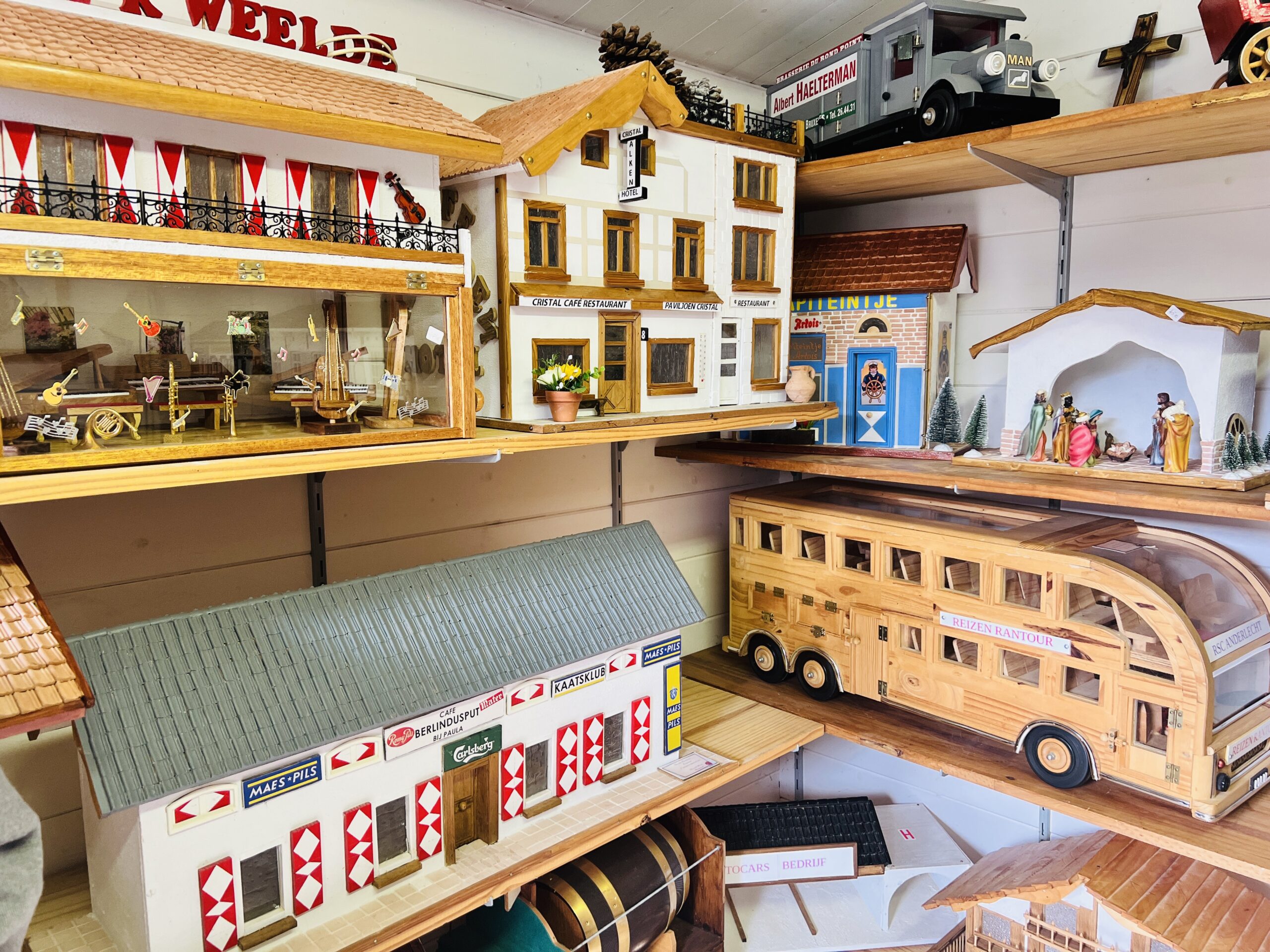 Samen werken ze deze helemaal eigenhandig uit: Herman het hout- en snijwerk, Rita het schilderwerk, de buitenafwerking en de aankleding. Zij leiden ons rond in hun wondere kleine wereld met kleinoden, waaraan ze enkele weken tot meerdere maanden met heel veel geduld en zin voor detail werkten. Ook de meer dan honderd miniatuurauto’s passeren de revue.