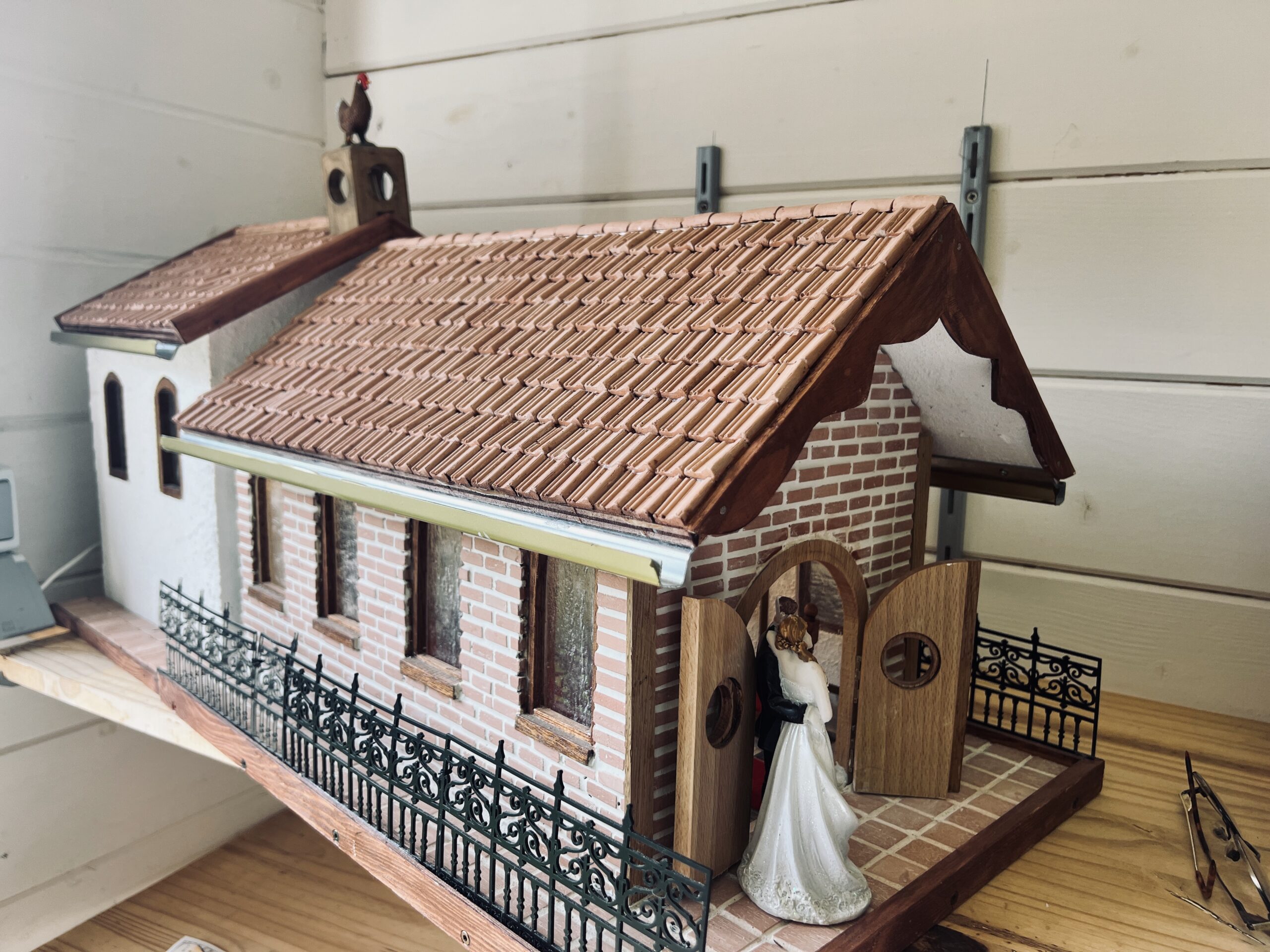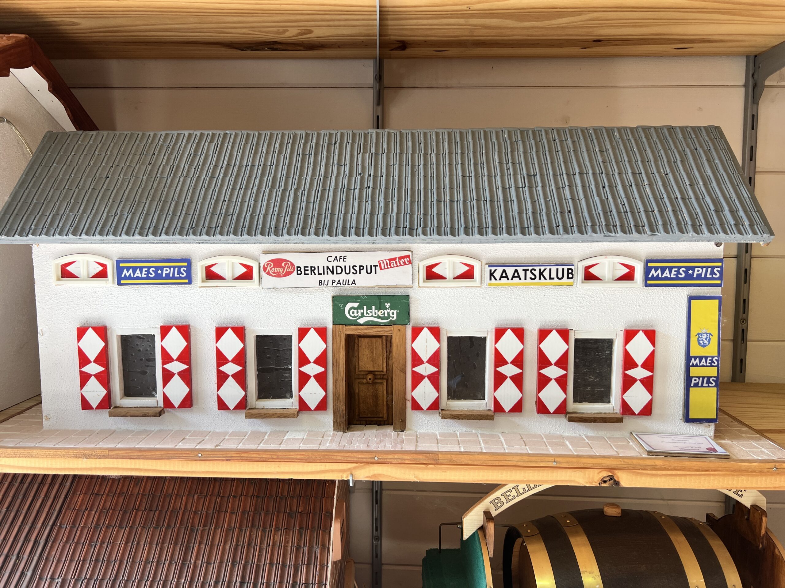 In zijn tuinhuis staat een pièce de résistance: de voormalige tramstatie van Schepdaal. Dat gebouw pronkt er naast enkele Ninoofse cafés van weleer zoals Paviljoen, Berlindisput, Stamcafé en ook het kapelleken van Bevingen.