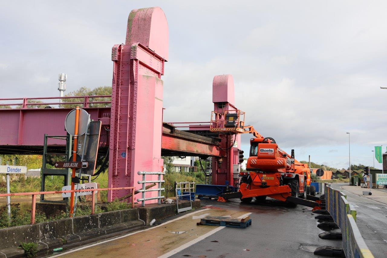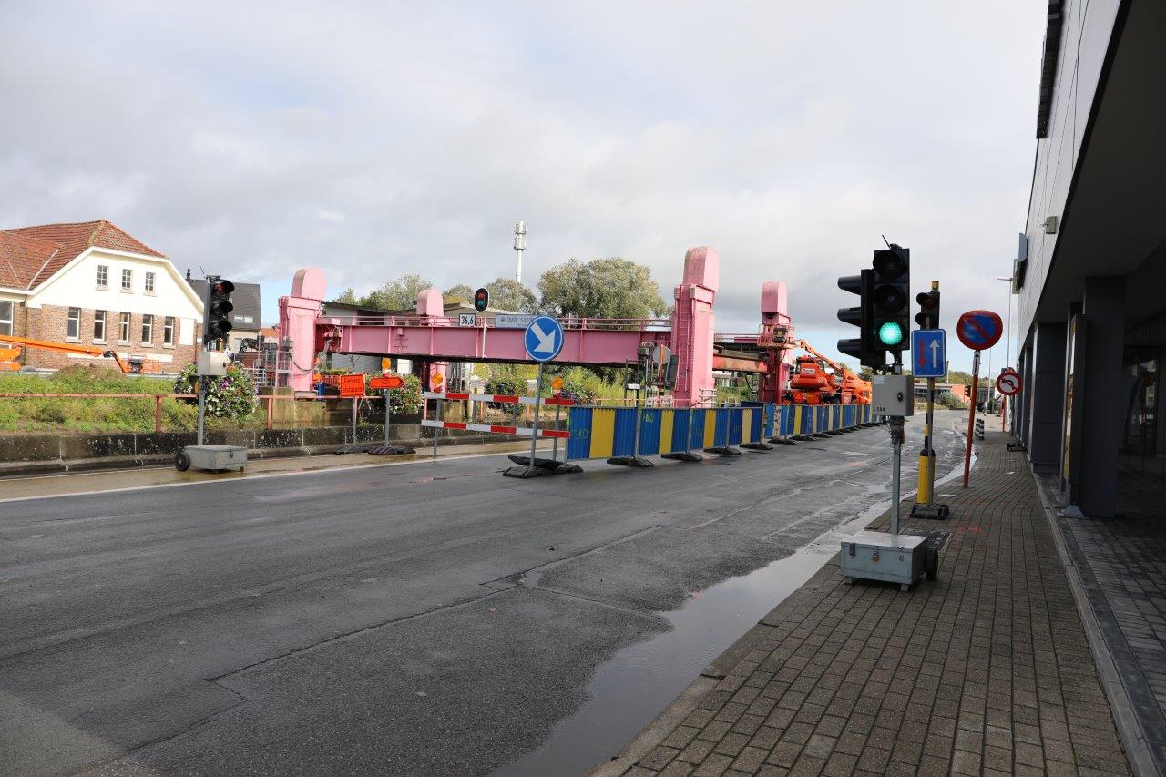 Door het opstellen van werfkranen en stellingen langs de Désiré De Bodtkaai, moet het verkeer ter hoogte van de brug beurtelings passeren door middel van verkeerslichten.