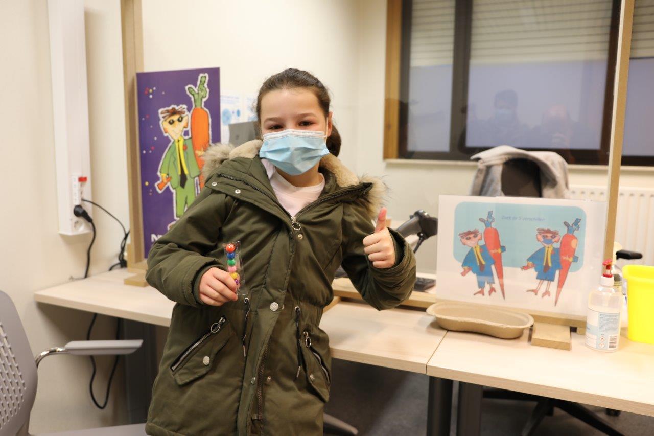 Het was 8.30 uur toen Ona Pieters als eerste 11-jarige het vaccin tegen COVID-19 kreeg toegediend.