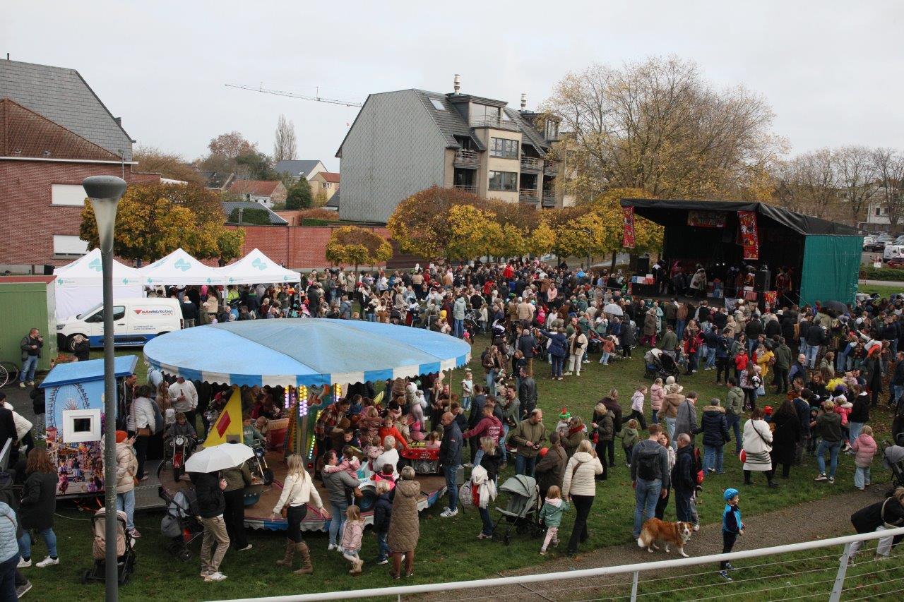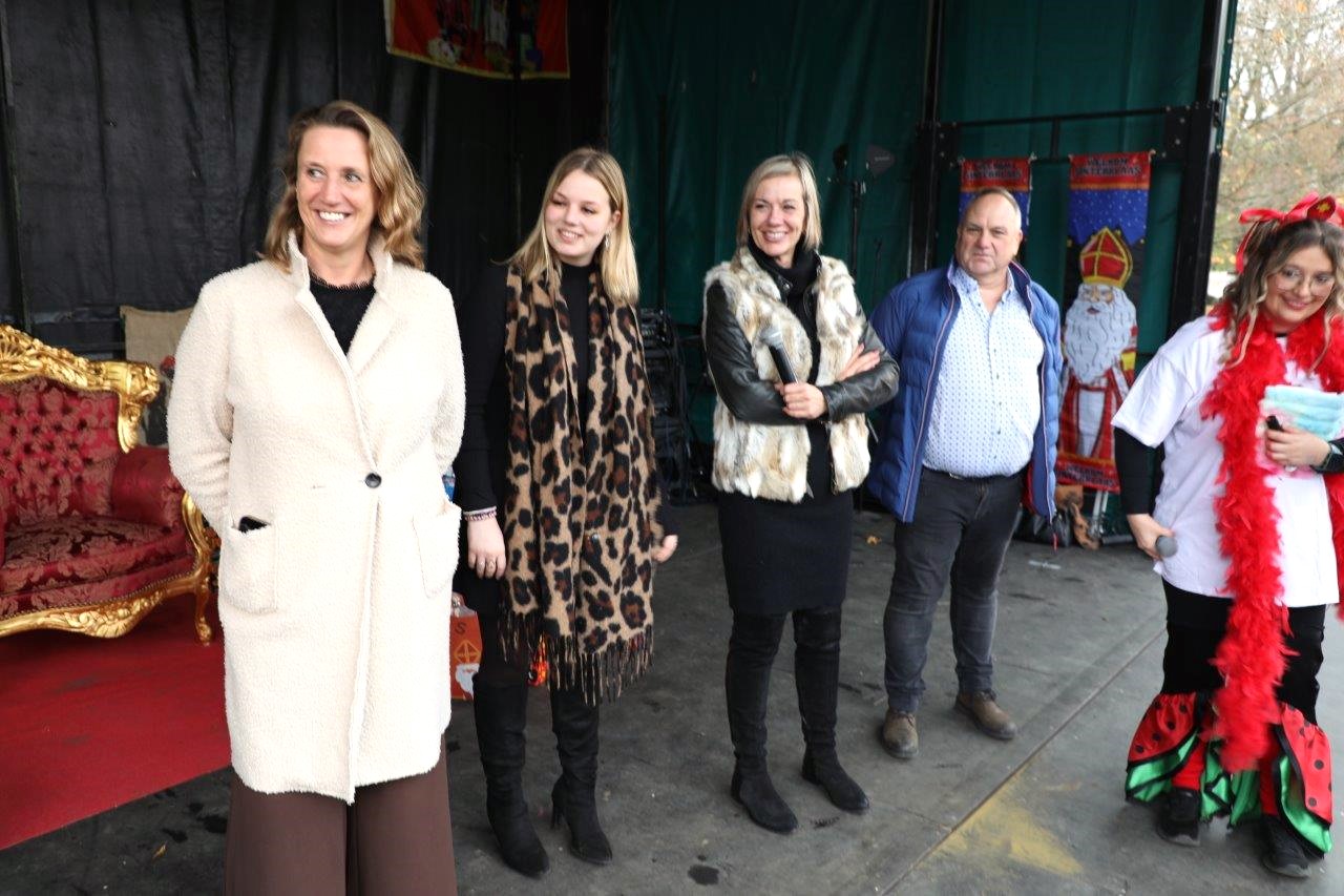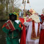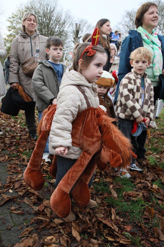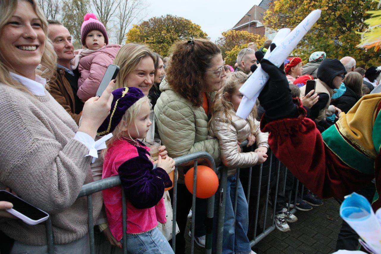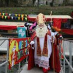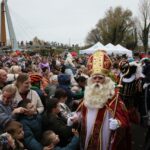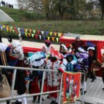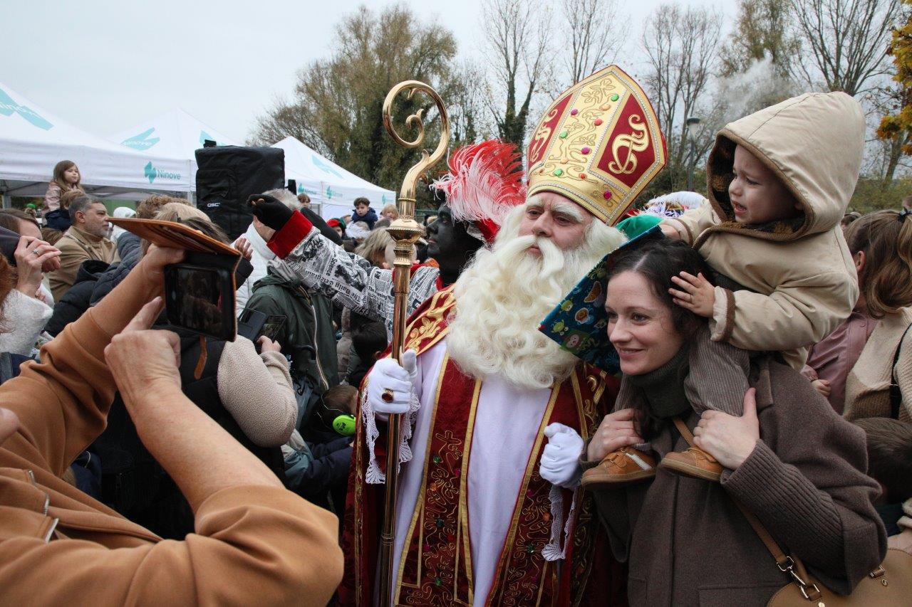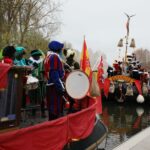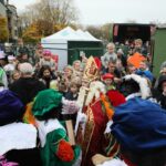 De boten meerden aan ter hoogte van ’t Oeverstekske, waarna de Sint en zijn gevolg zich door de massa een weg baanden naar het podium op de Ganzenweide.