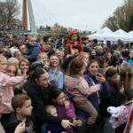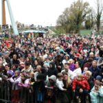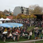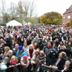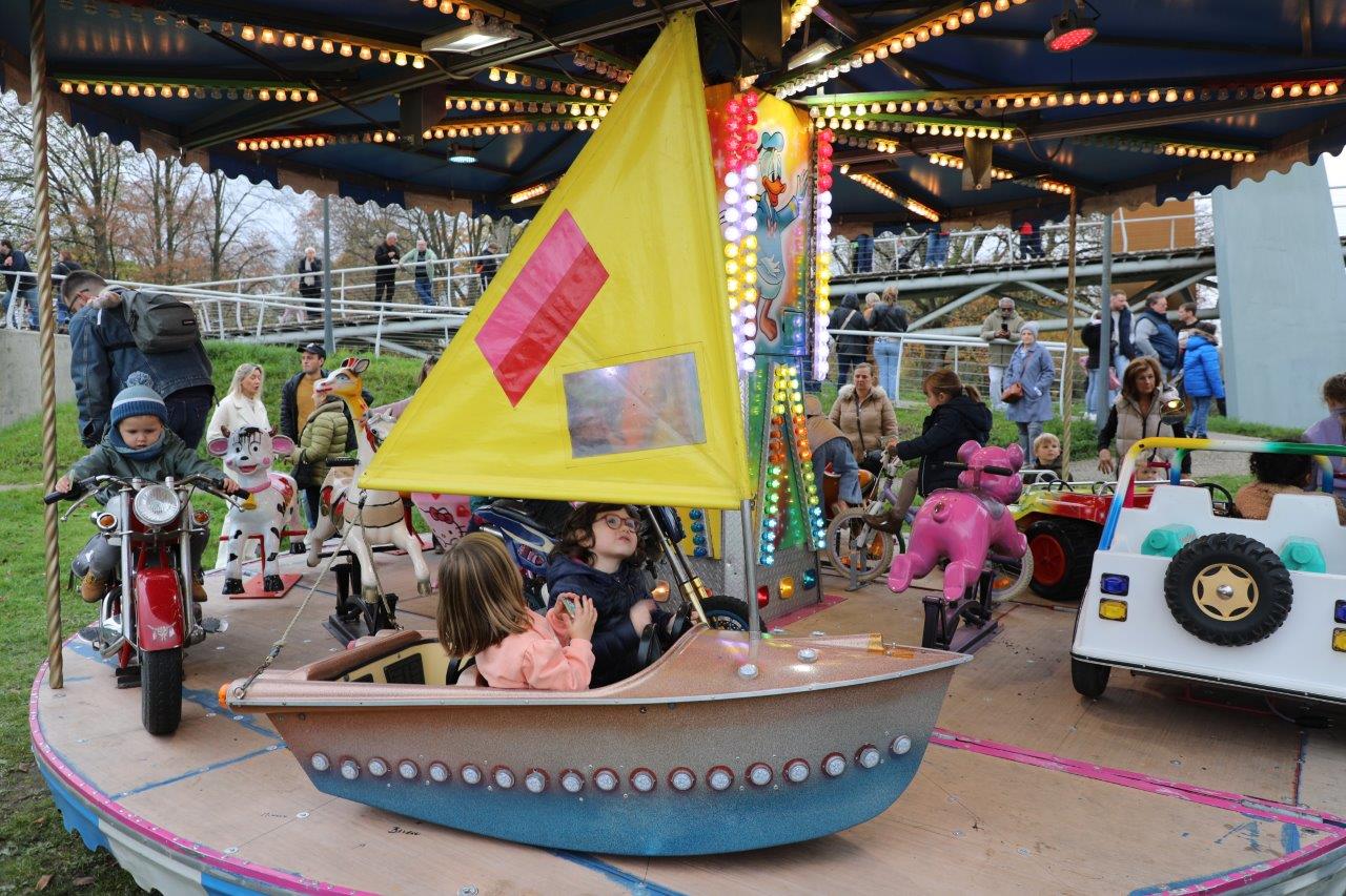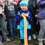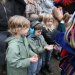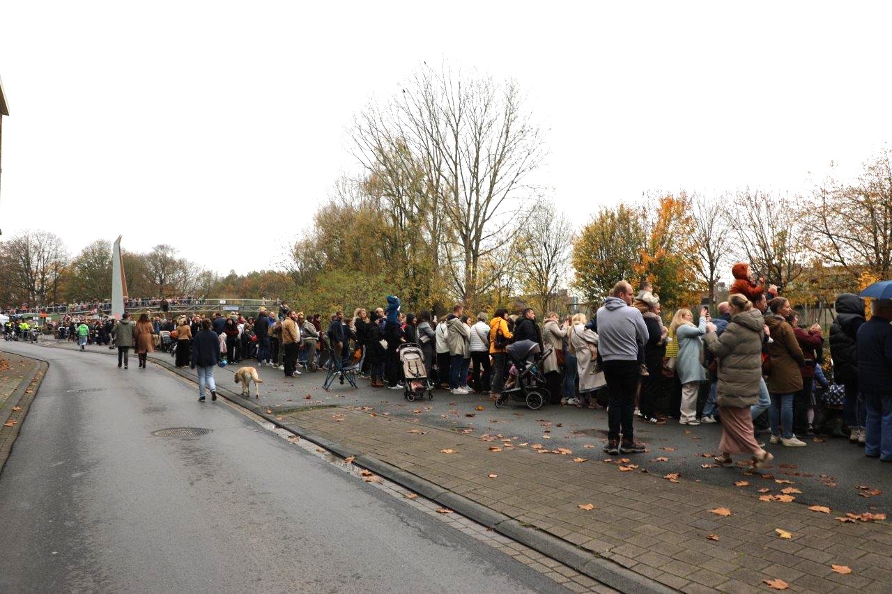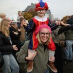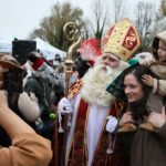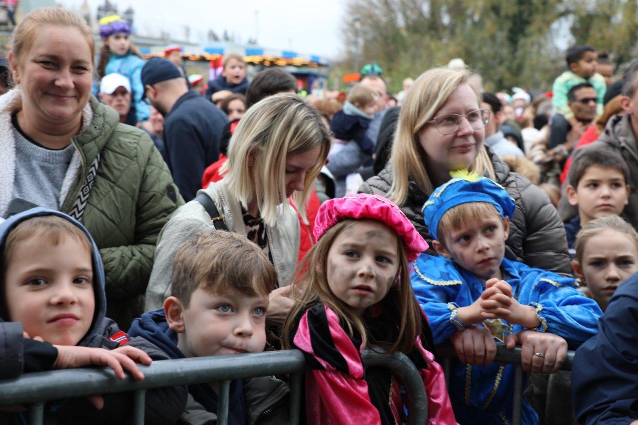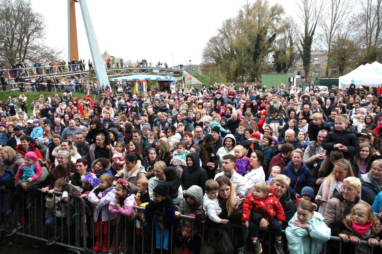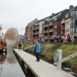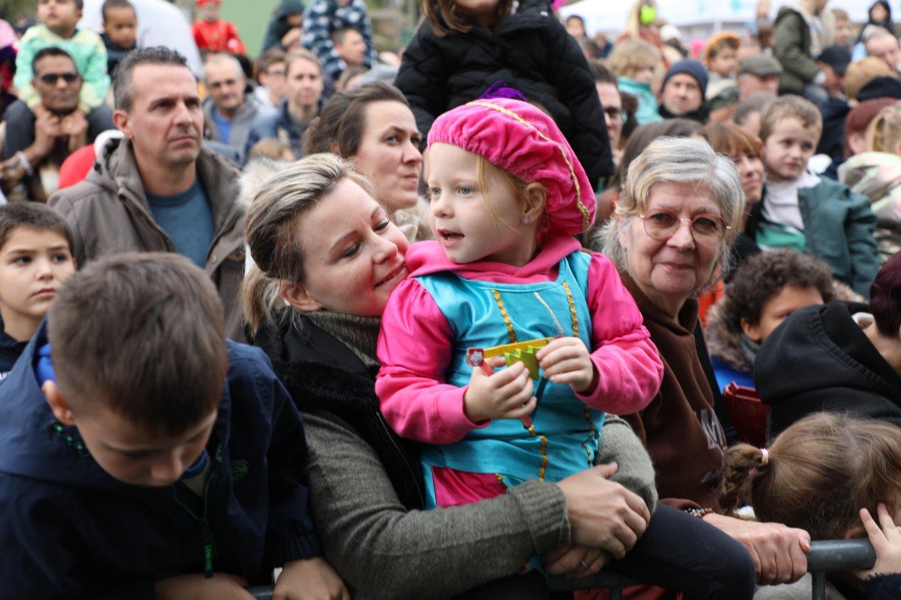 De boten meerden aan ter hoogte van ’t Oeverstekske, waarna de Sint en zijn gevolg zich door de massa een weg baanden naar het podium op de Ganzenweide.