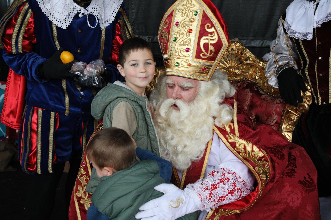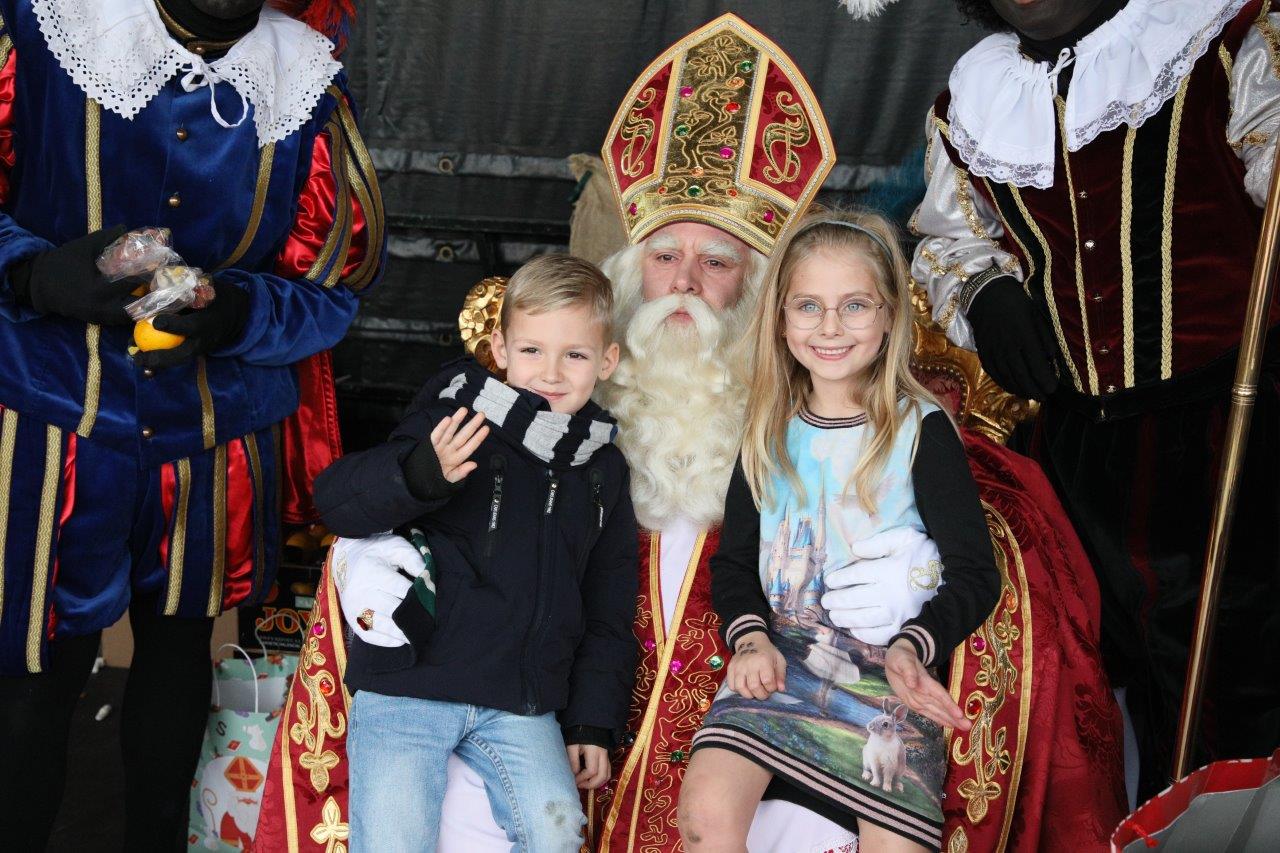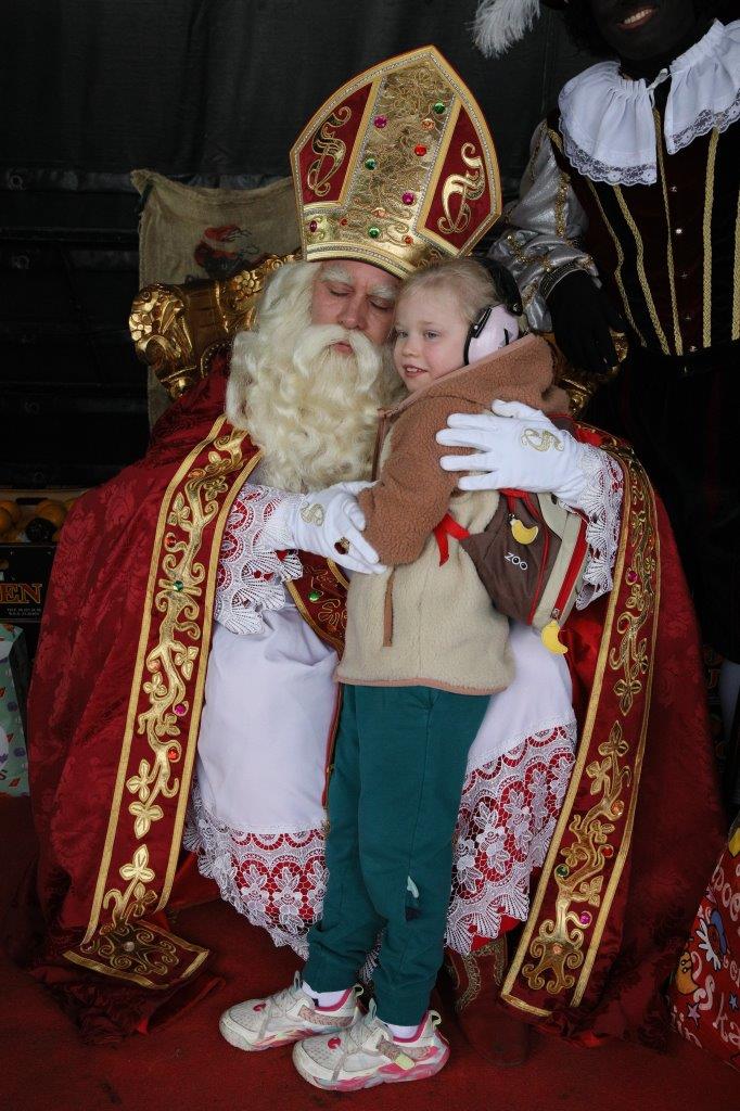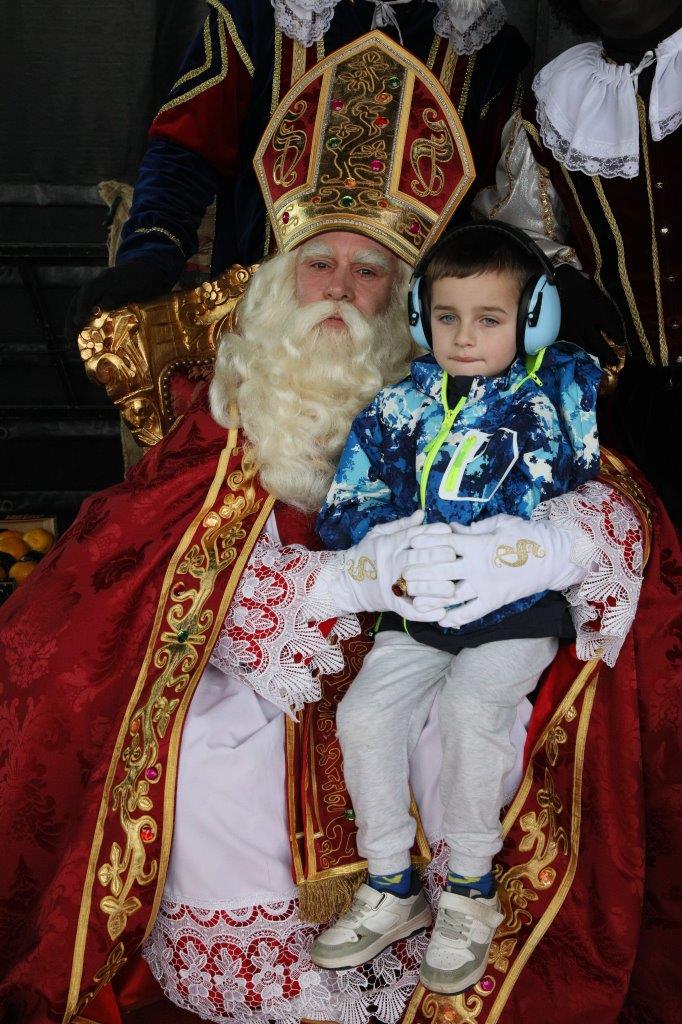 Na de podiumshow mochten alle kinderen een zakje snoep afhalen bij de Sint en hem hun lijstje met wensen overhandigen.