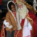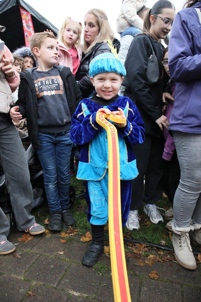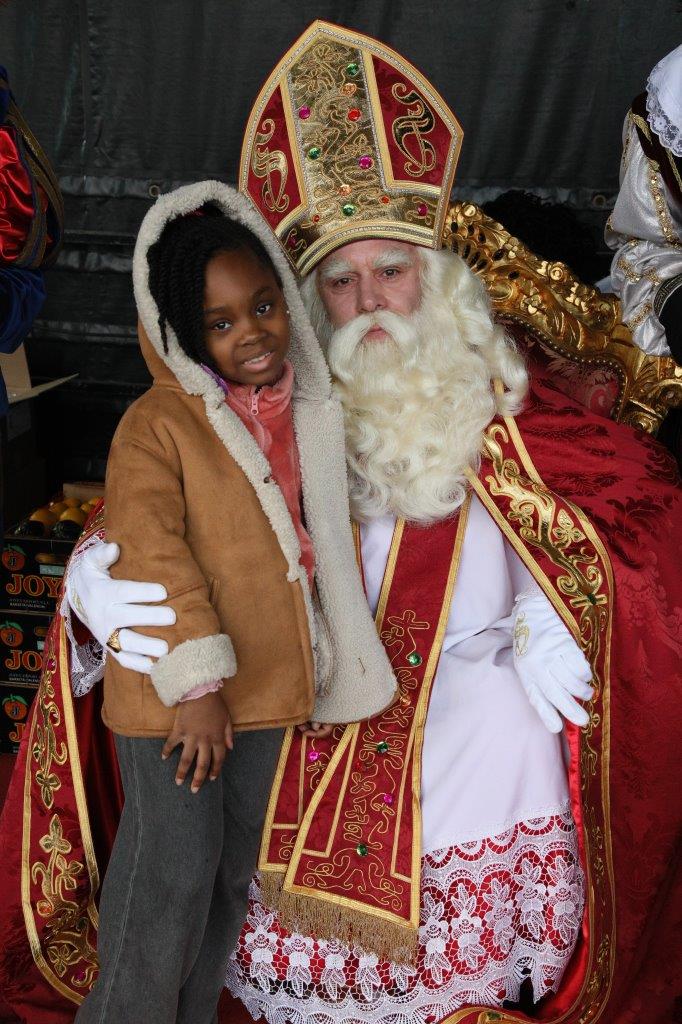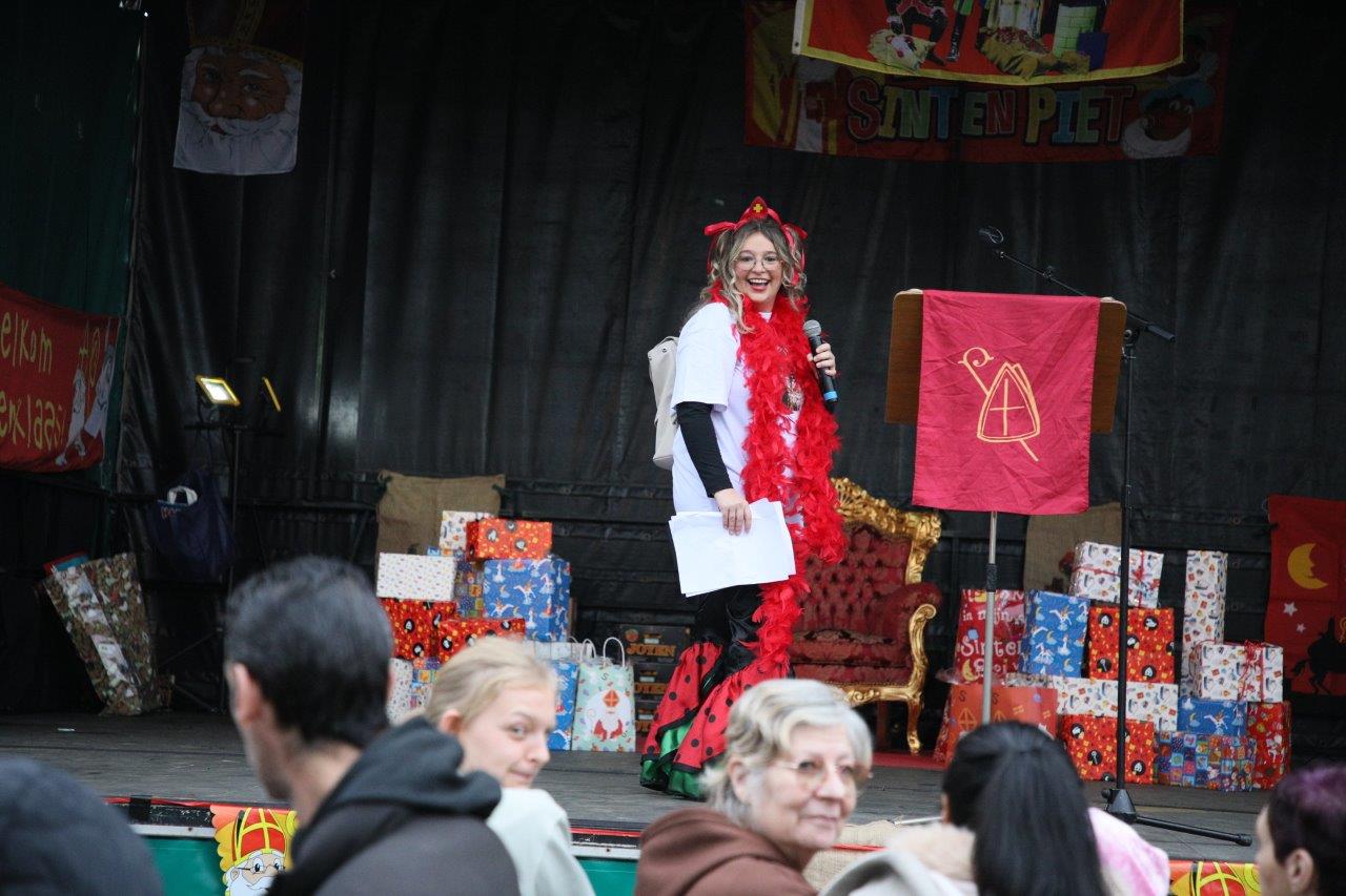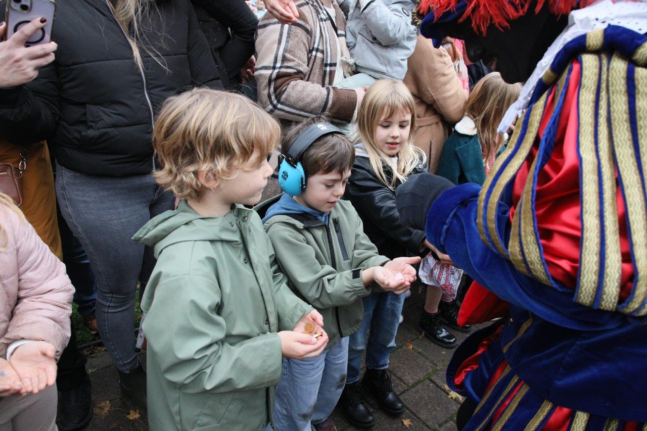 Na de podiumshow mochten alle kinderen een zakje snoep afhalen bij de Sint en hem hun lijstje met wensen overhandigen.