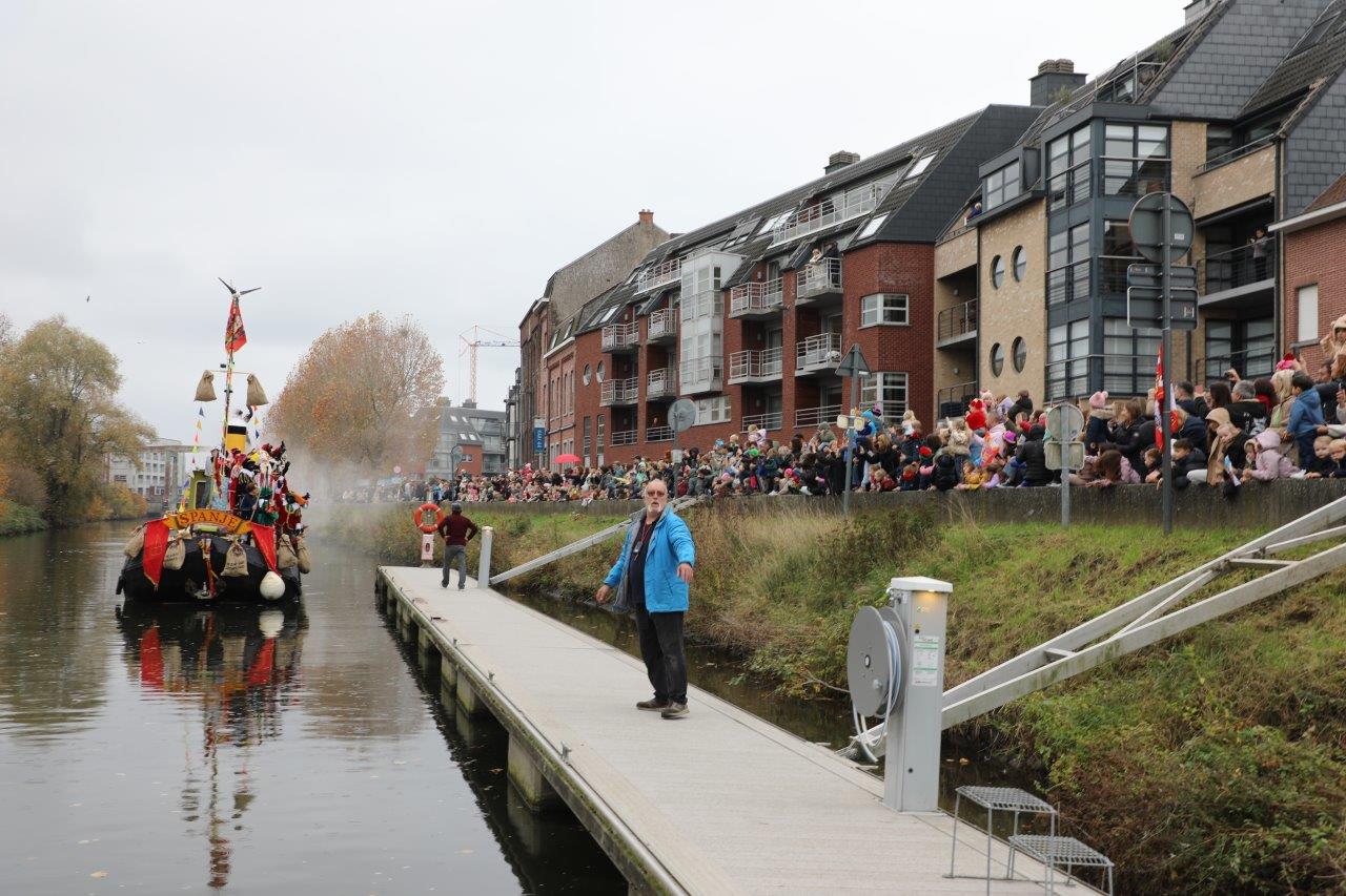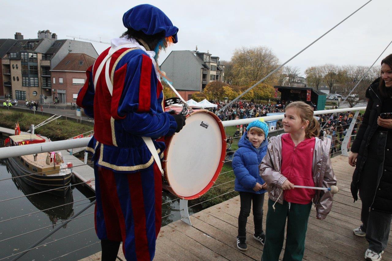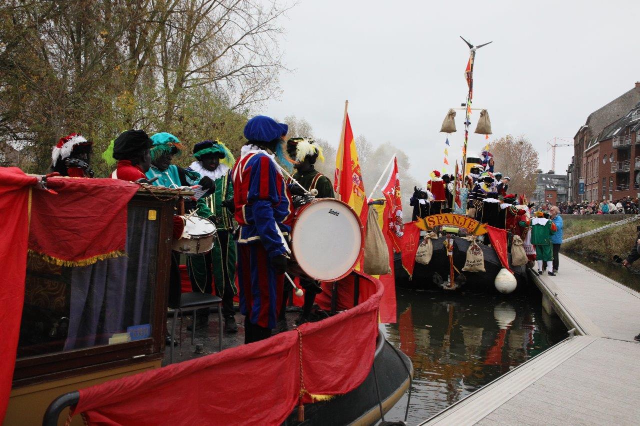 Rond 14 uur meerden de eerste pieten met de muziekboot en de pietenfanfare aan ter hoogte van de aanlegsteiger. Burgemeester Guy D’haeseleer en enkele schepenen verwelkomden de goedheilige man en zijn 30 pieten.