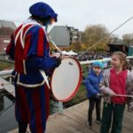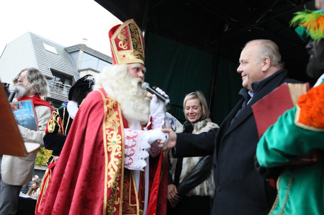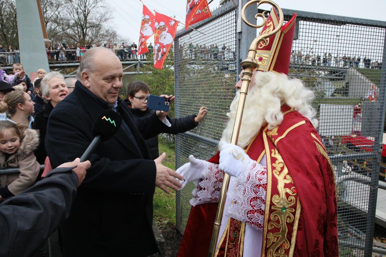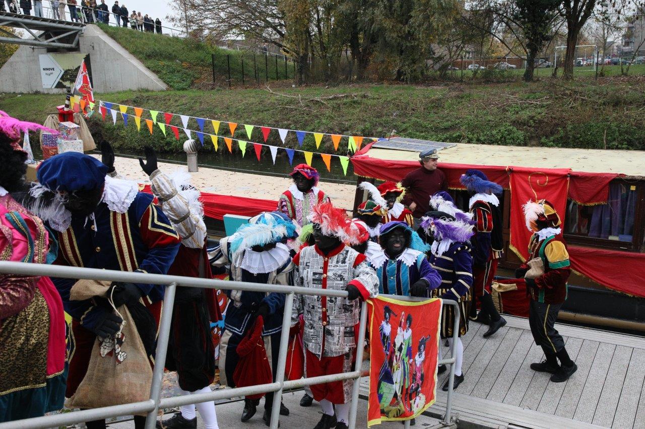 Rond 14 uur meerden de eerste pieten met de muziekboot en de pietenfanfare aan ter hoogte van de aanlegsteiger. Burgemeester Guy D’haeseleer en enkele schepenen verwelkomden de goedheilige man en zijn 30 pieten.