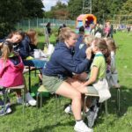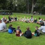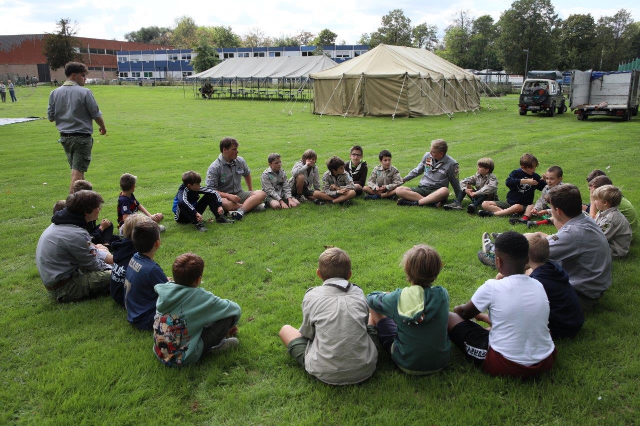 De leiding met Ruben De Vuyst, Maximiliaan Muylaert en Joeri Moysoon verwelkomde de kapoenen en welpen met allerlei spelletjes. Maar eerst maakten ze kennis met de nieuwe leden: dit jaar zijn maar liefst 20 nieuwkomers ingelijfd.